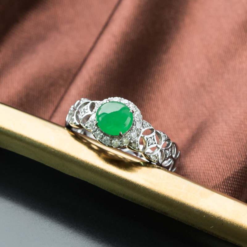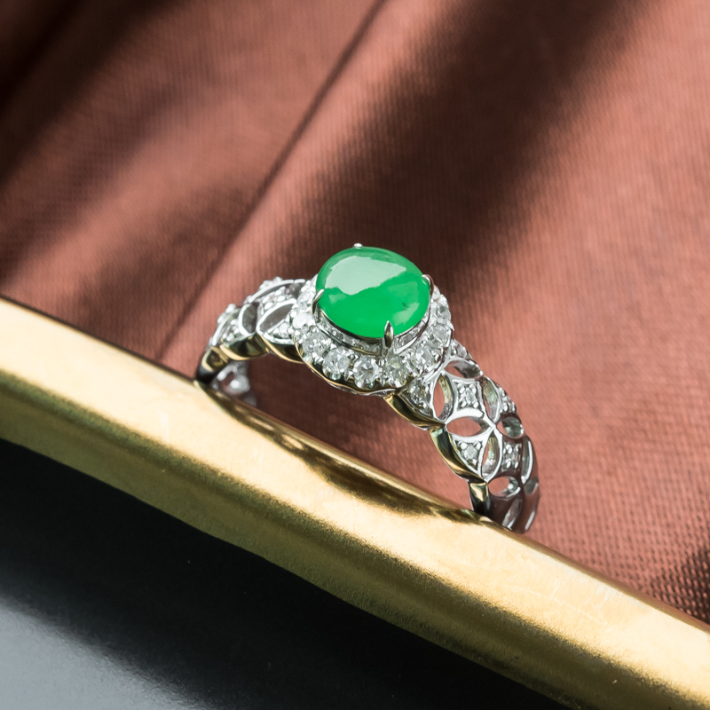 • 18K糯冰种阳绿翡翠戒指