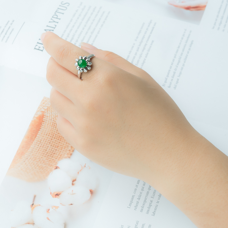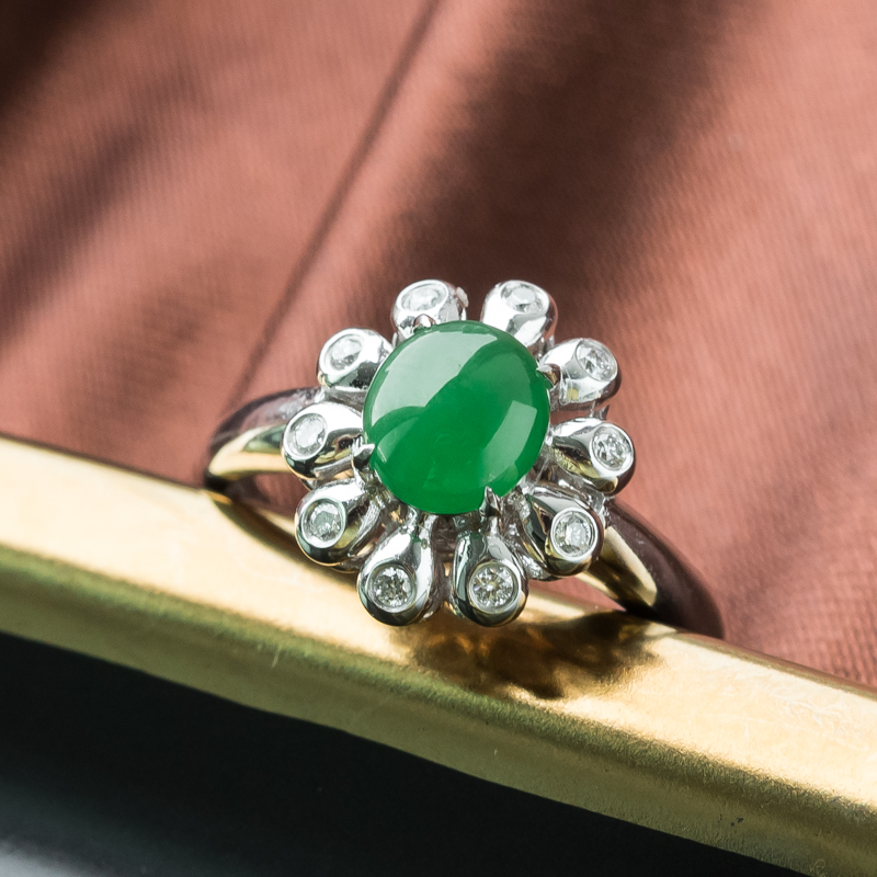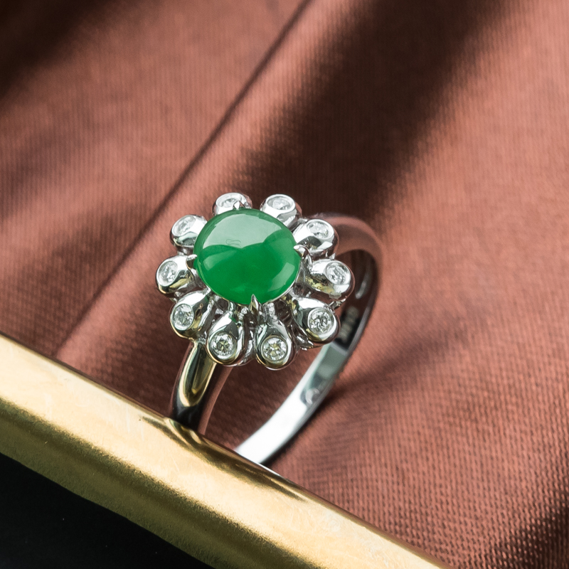 • 18K糯冰种翠绿翡翠戒指
