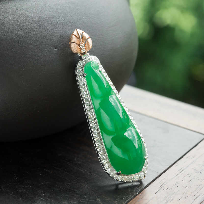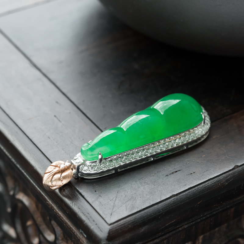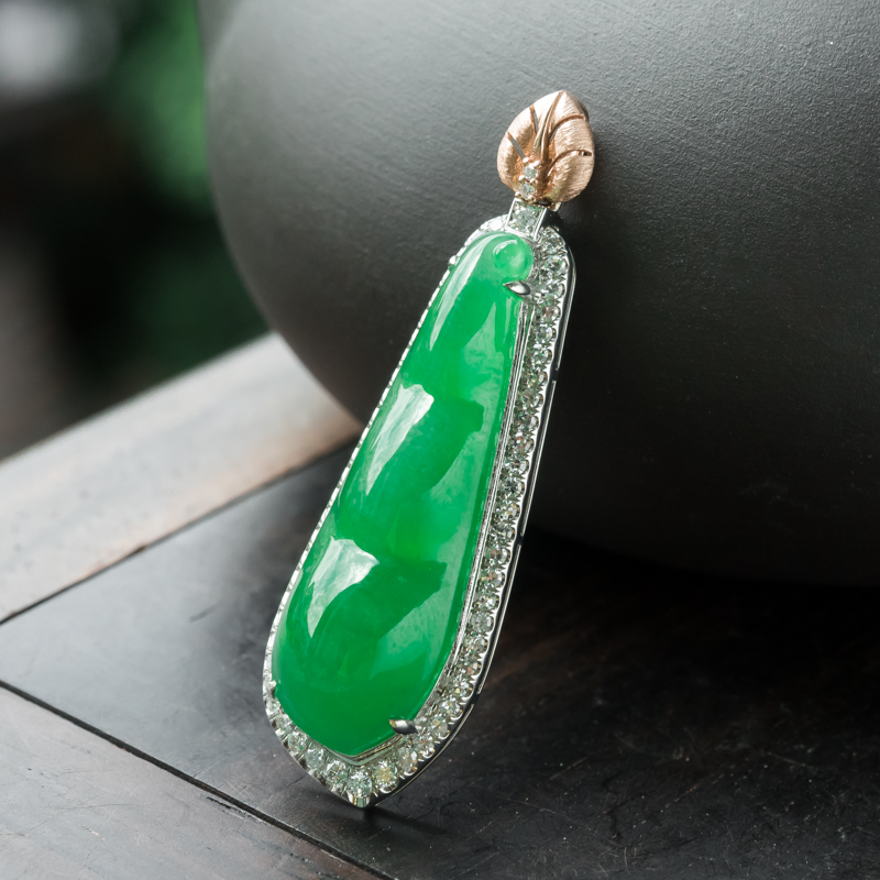 • [名  称] 18K糯冰种阳绿翡翠福豆吊坠