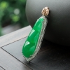 • 18K糯冰种阳绿翡翠福豆吊坠