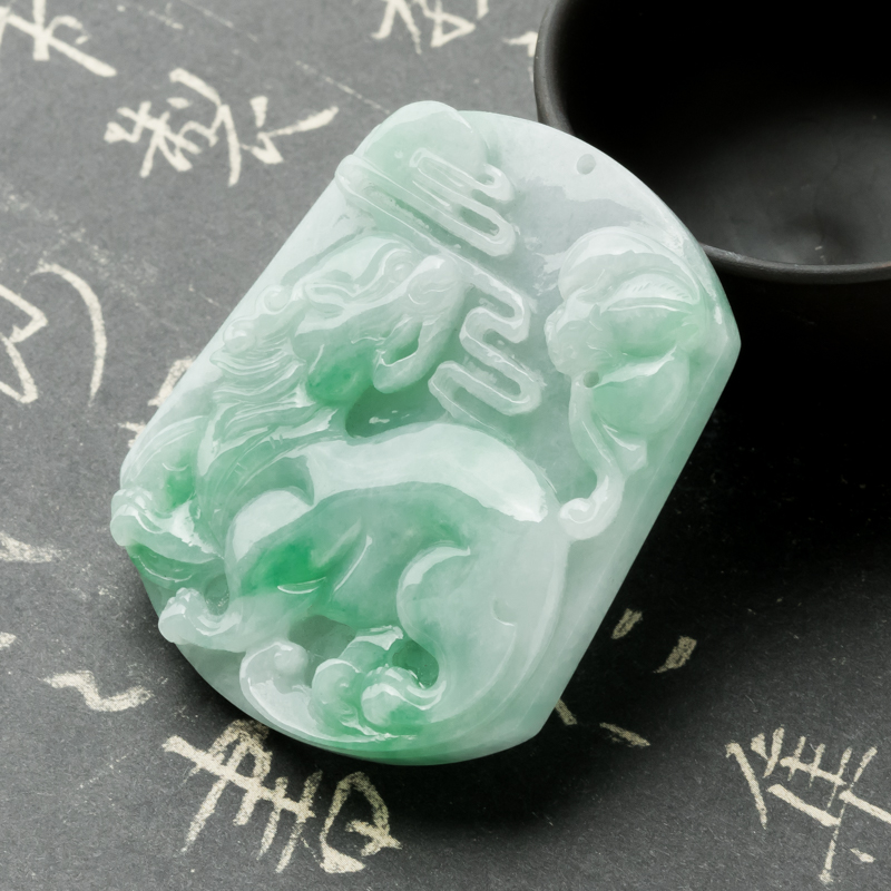 • [名  称] 糯冰种飘翠翡翠麒麟吊坠