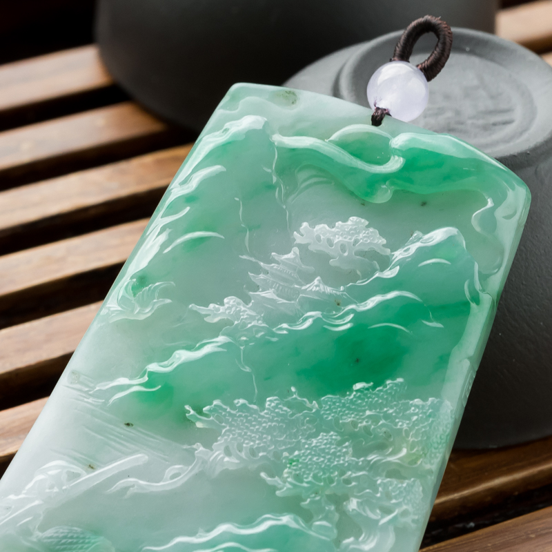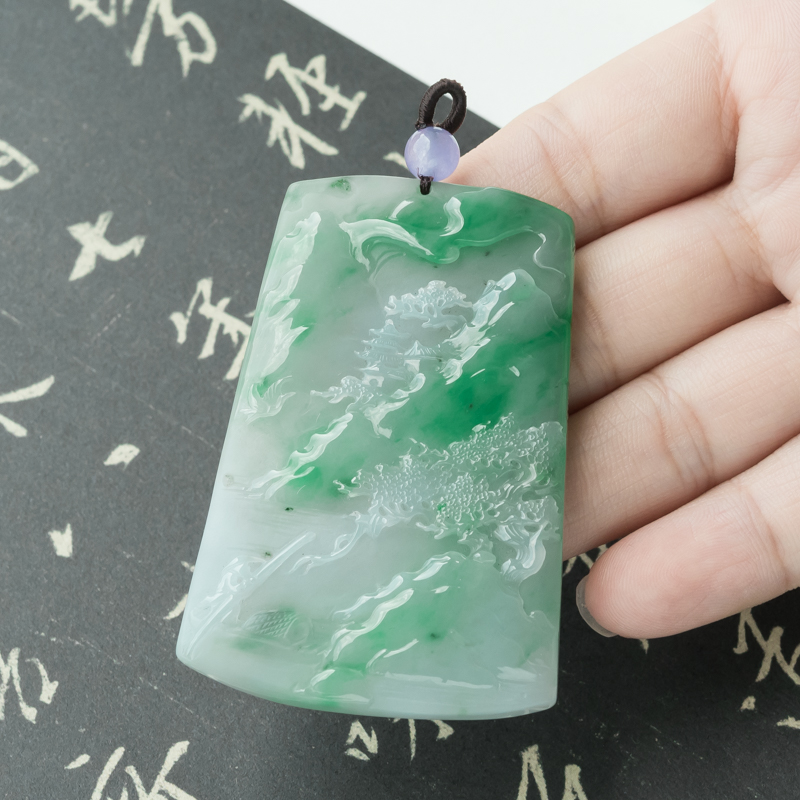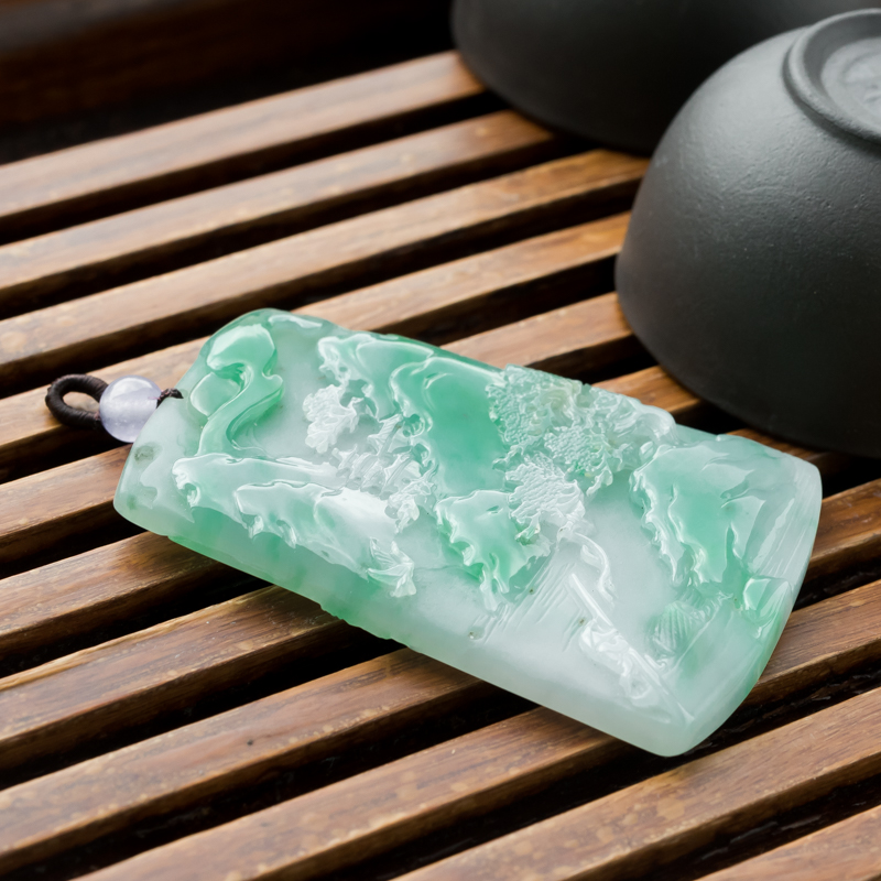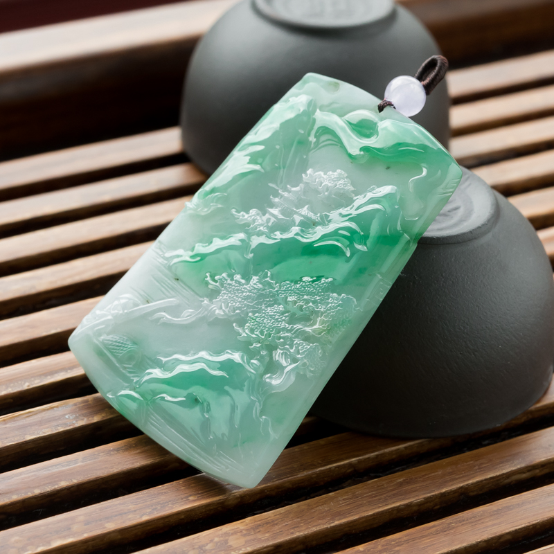 • [名  称] 糯冰种飘翠翡翠山水意境吊坠