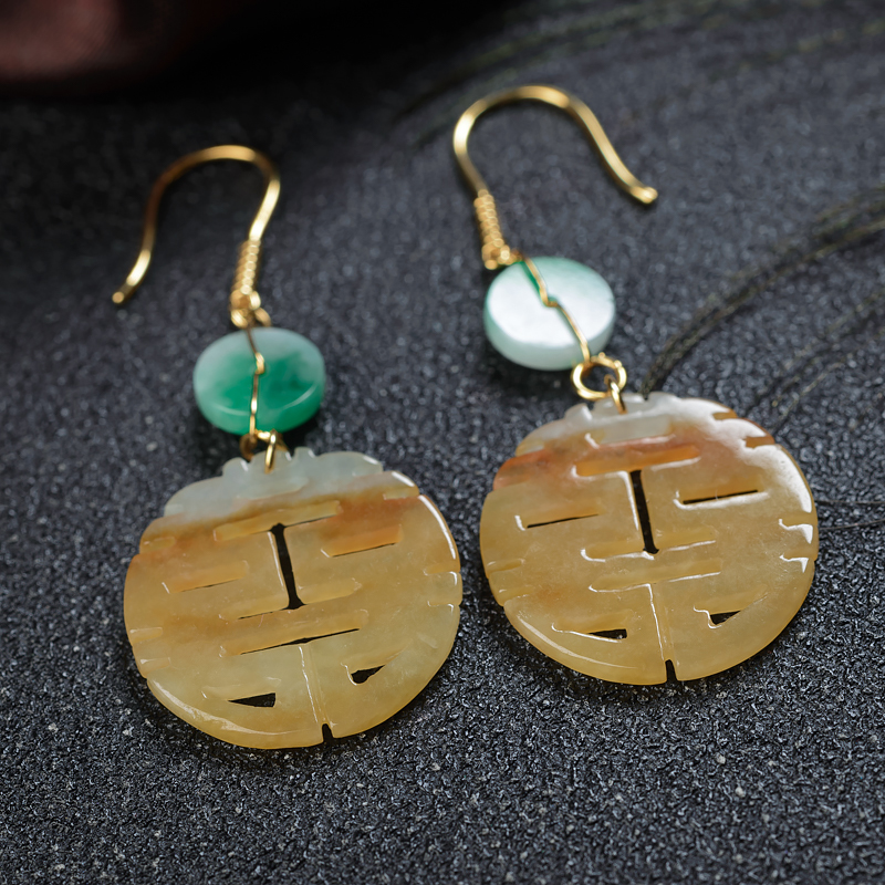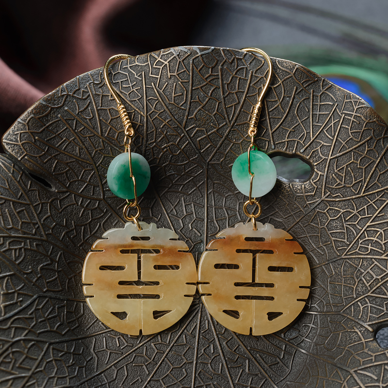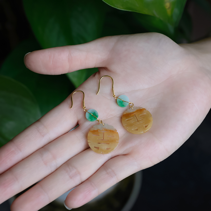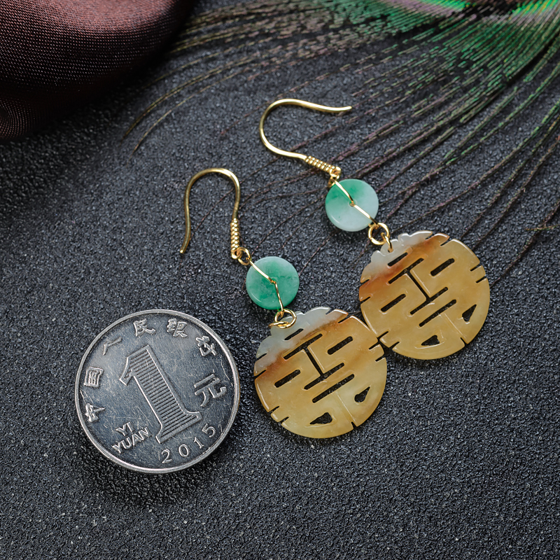 • [名  称] 18K糯冰种黄翡双喜耳坠