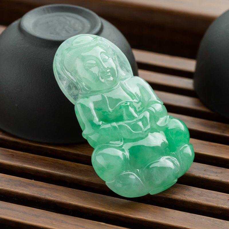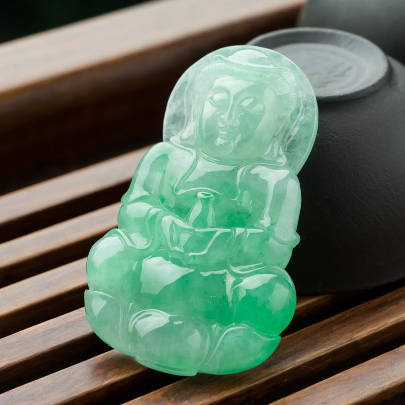 • [名  称] 糯冰种飘翠翡翠观音吊坠
