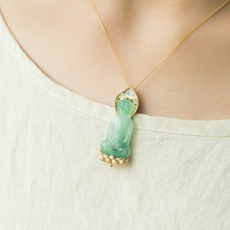 • [名  称] 18K糯冰种飘翠翡翠大日如来吊坠