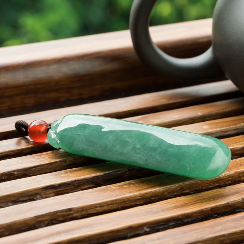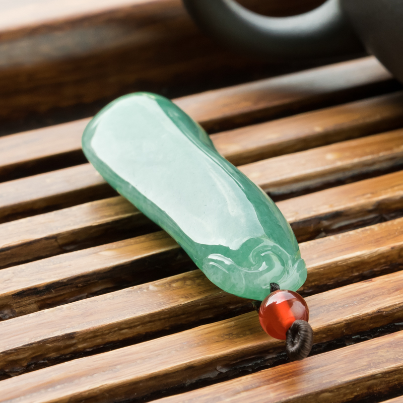 • 糯冰种豆绿翡翠福瓜吊坠