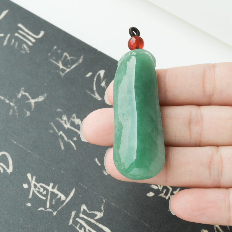 • [名  称] 糯冰种豆绿翡翠福瓜吊坠