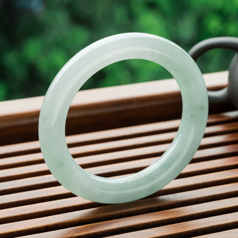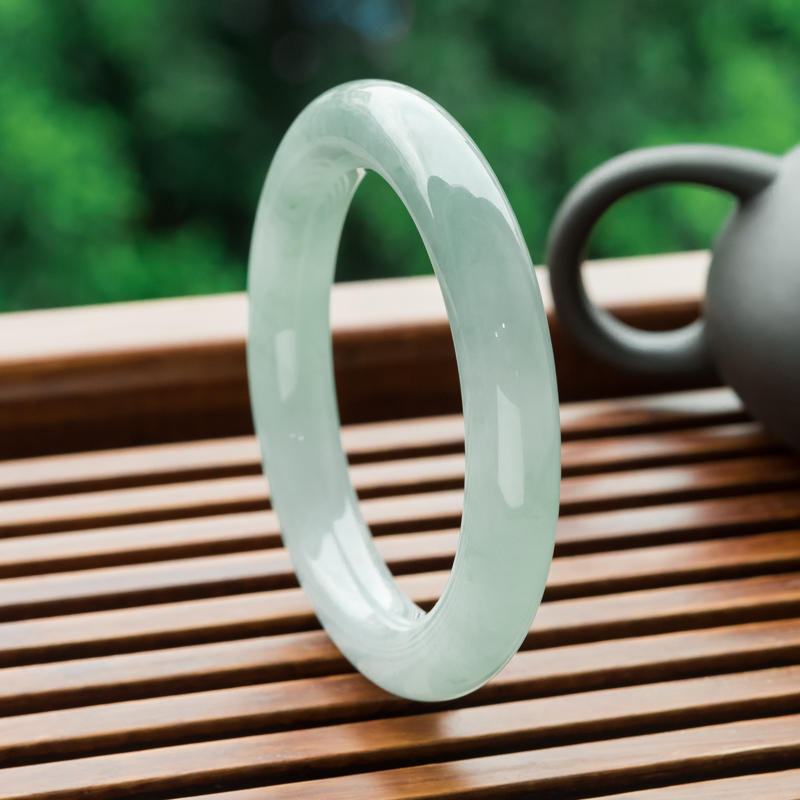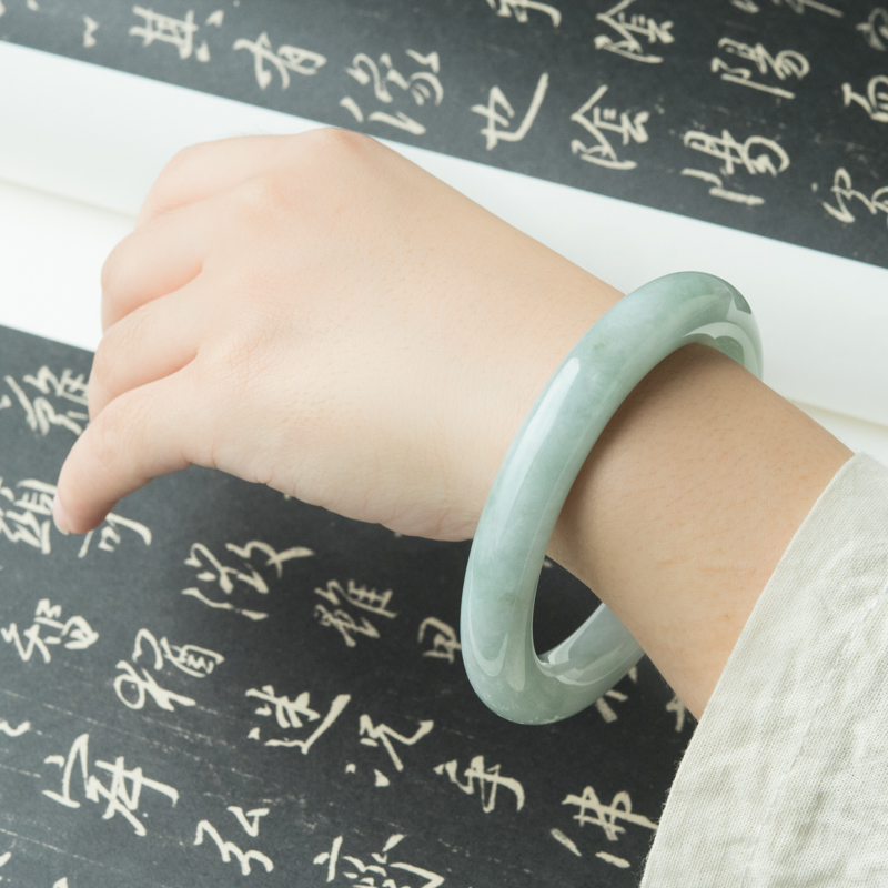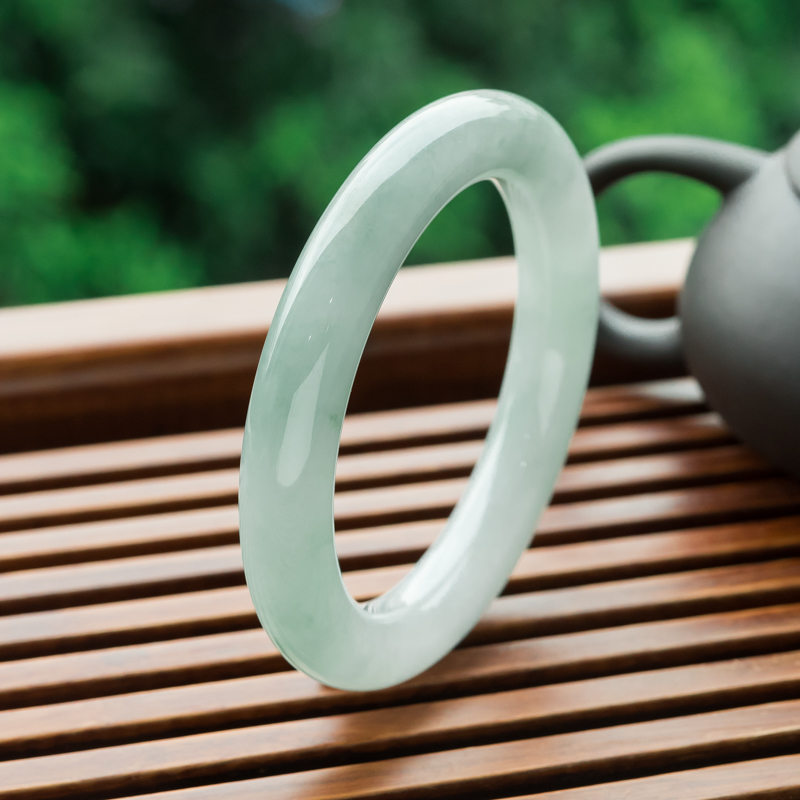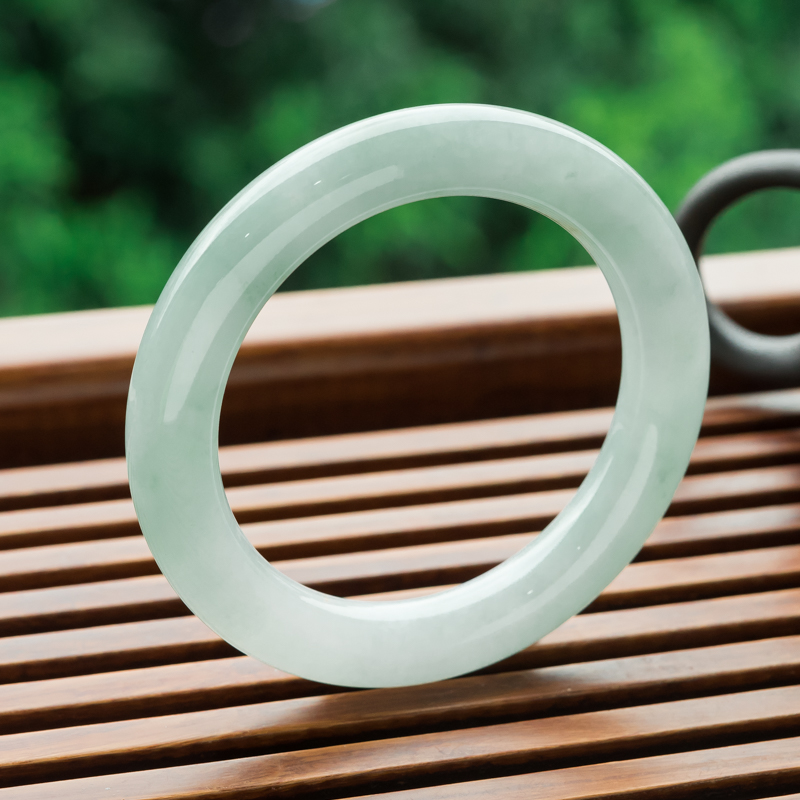 • [名  称] 59mm糯冰种浅绿翡翠圆镯