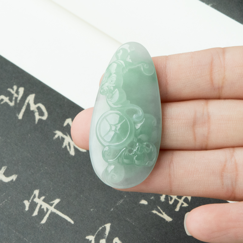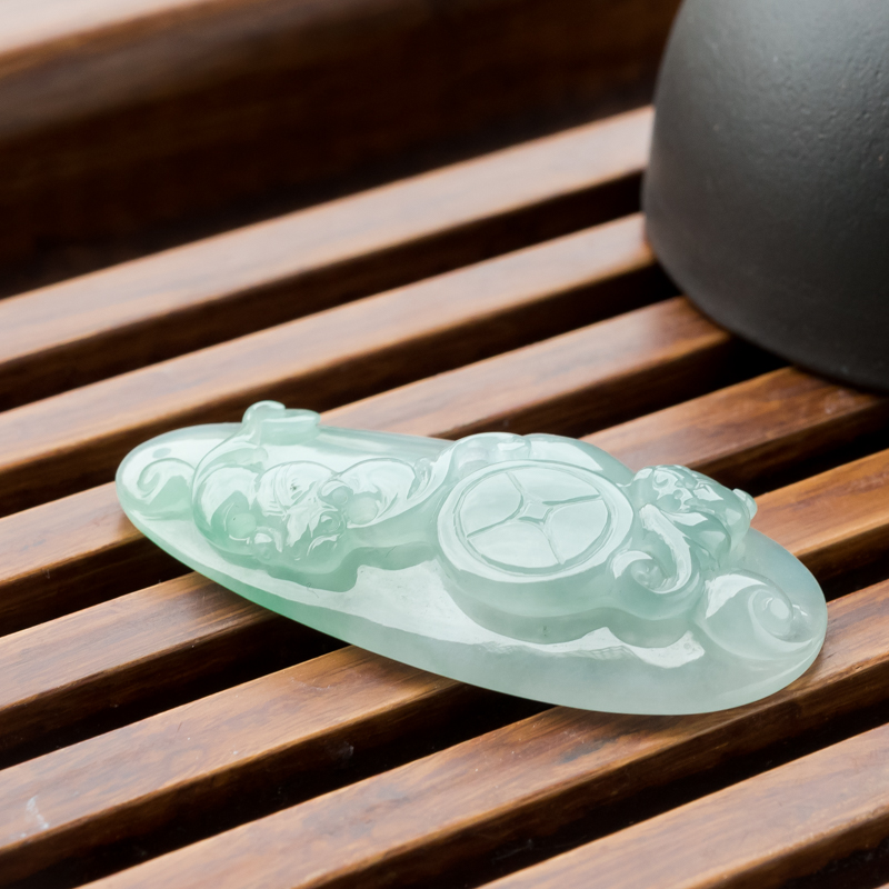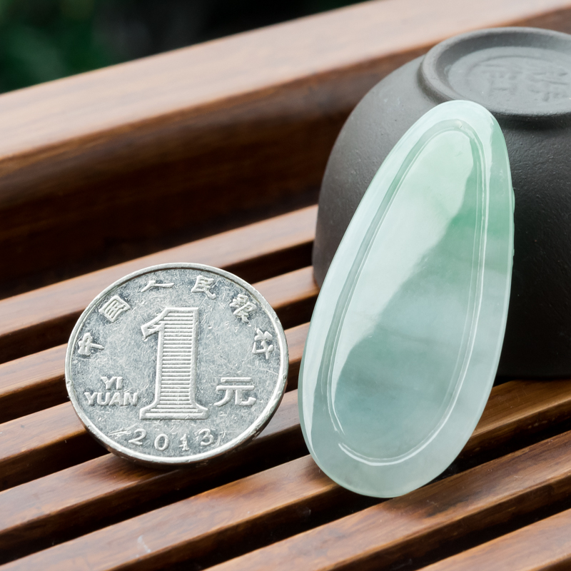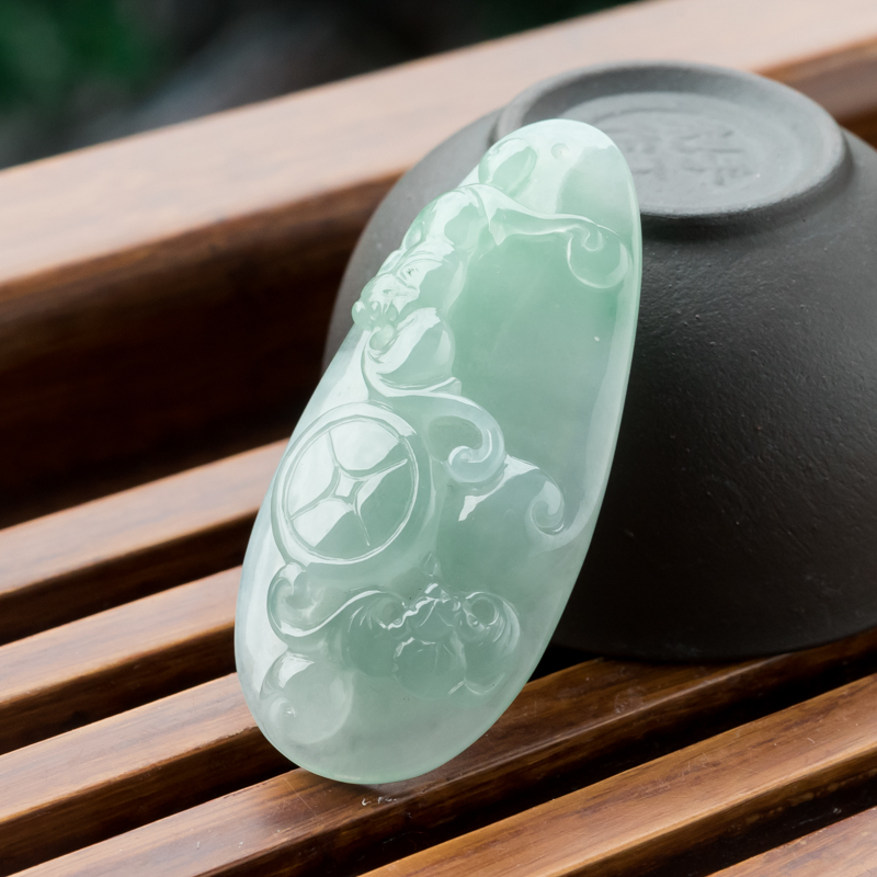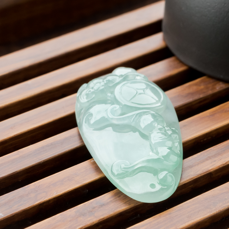 • [名  称] 糯冰种浅绿翡翠福在眼前吊坠
