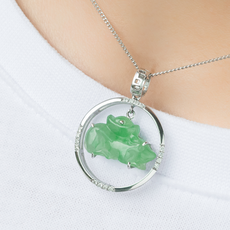 • [名  称] 18K糯冰种浅绿翡翠福鼠吊坠