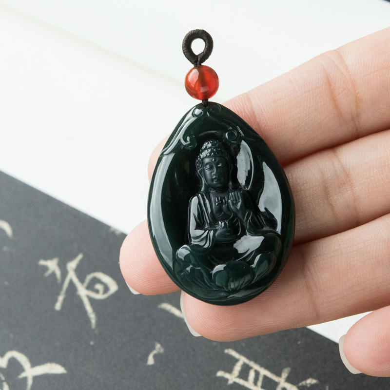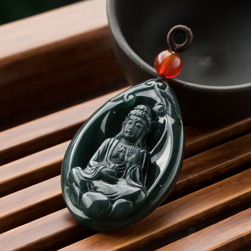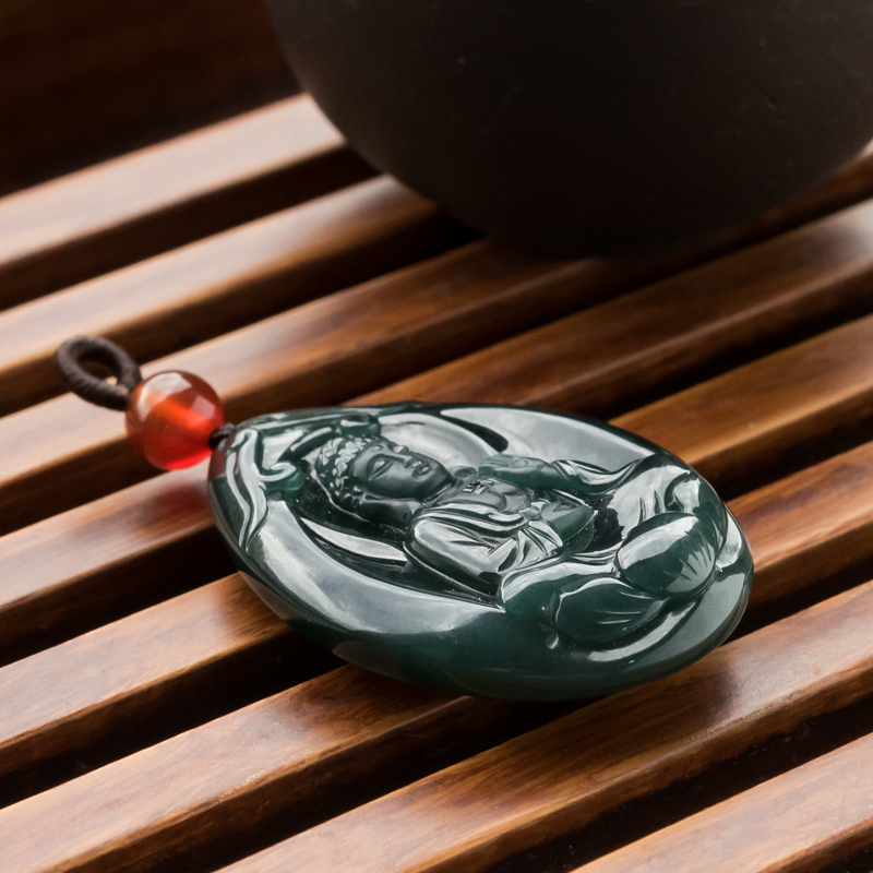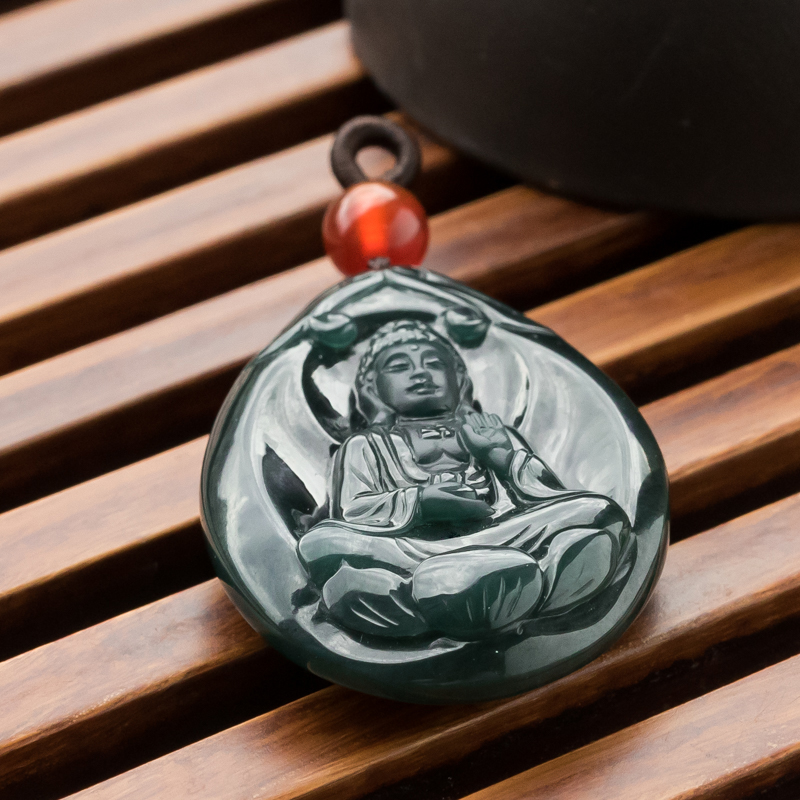 • 糯冰种墨翠大日如来吊坠