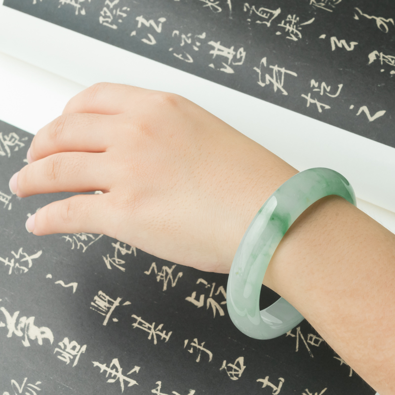 • [名  称] 58mm糯冰种飘翠翡翠平安镯