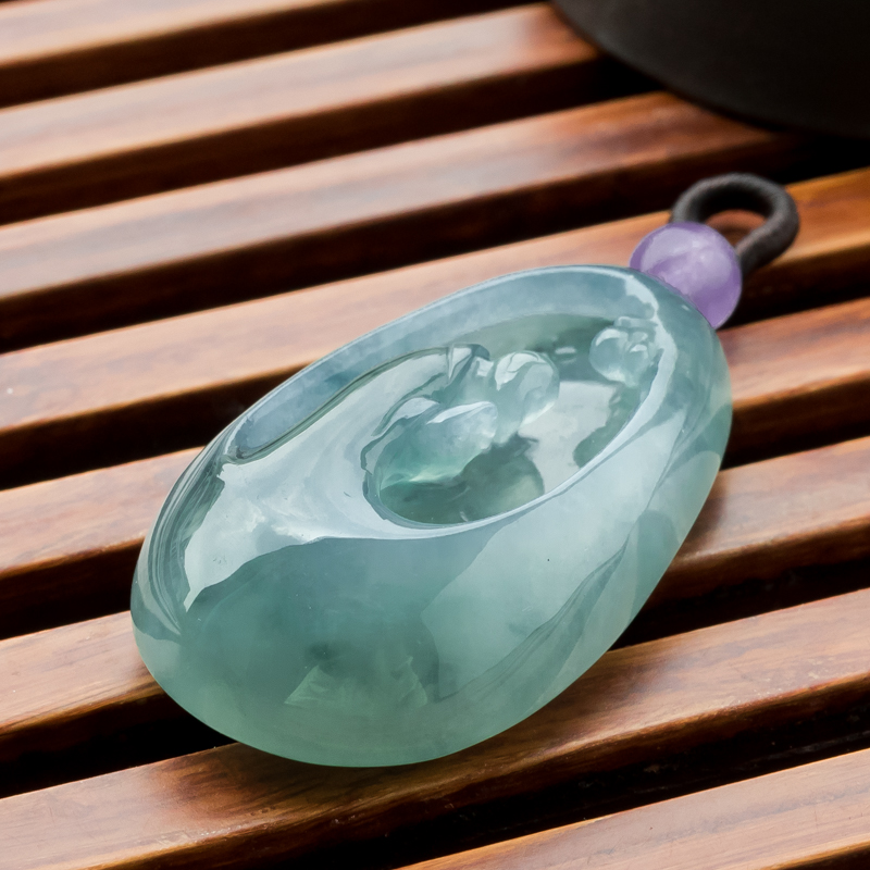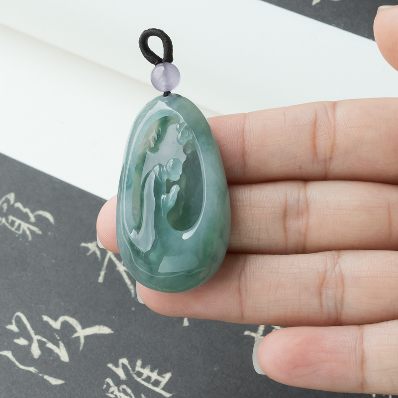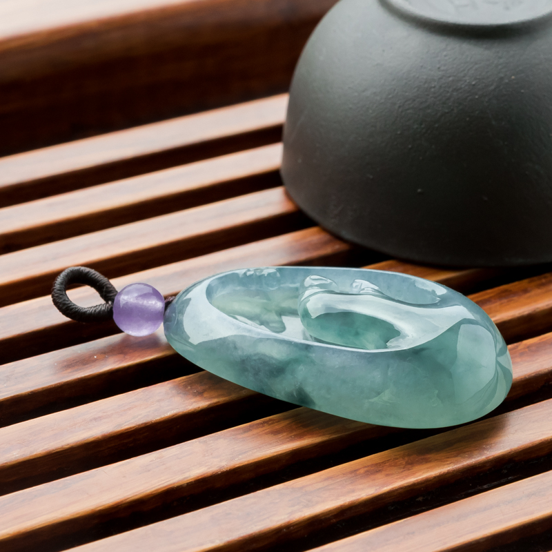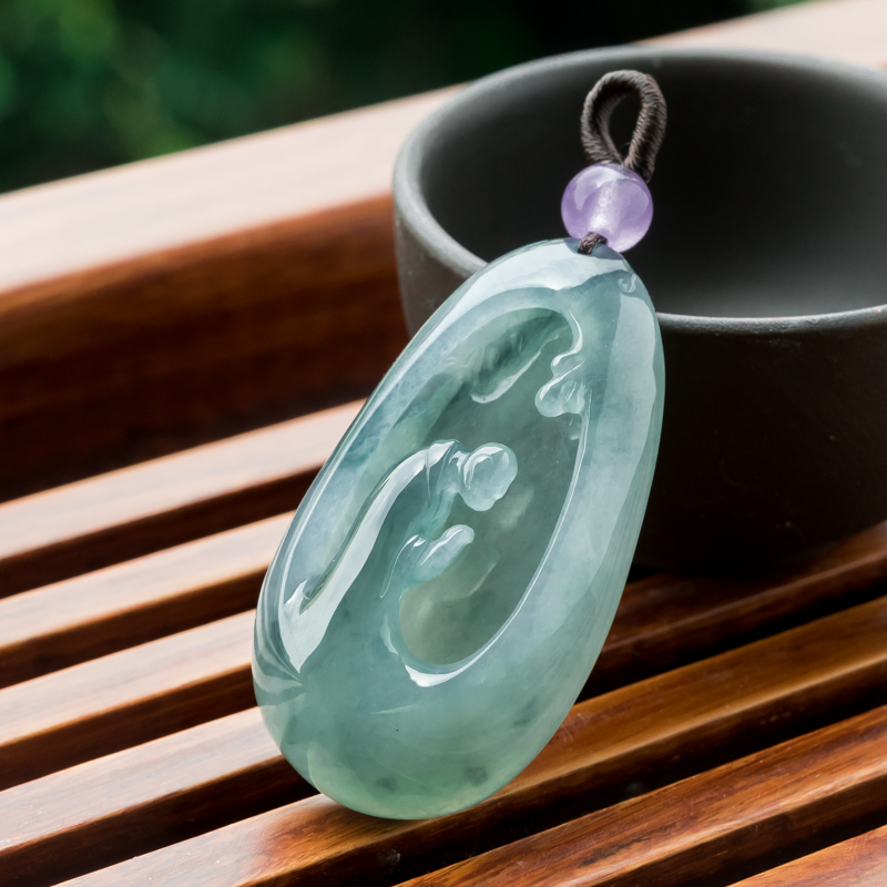 • [名  称] 糯冰种飘花翡翠悟道吊坠