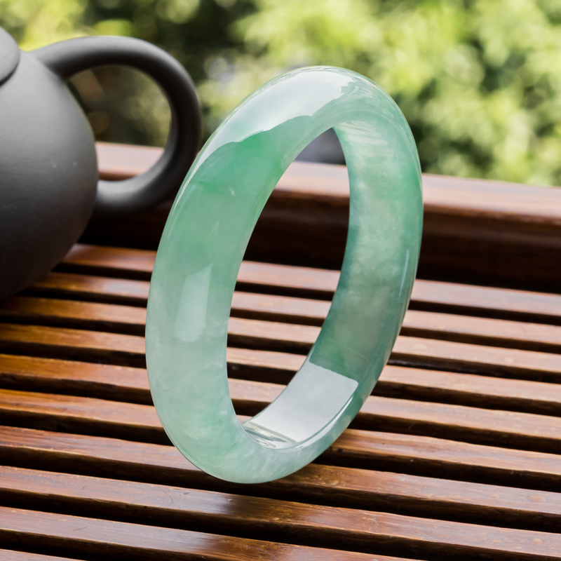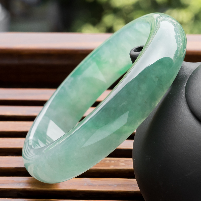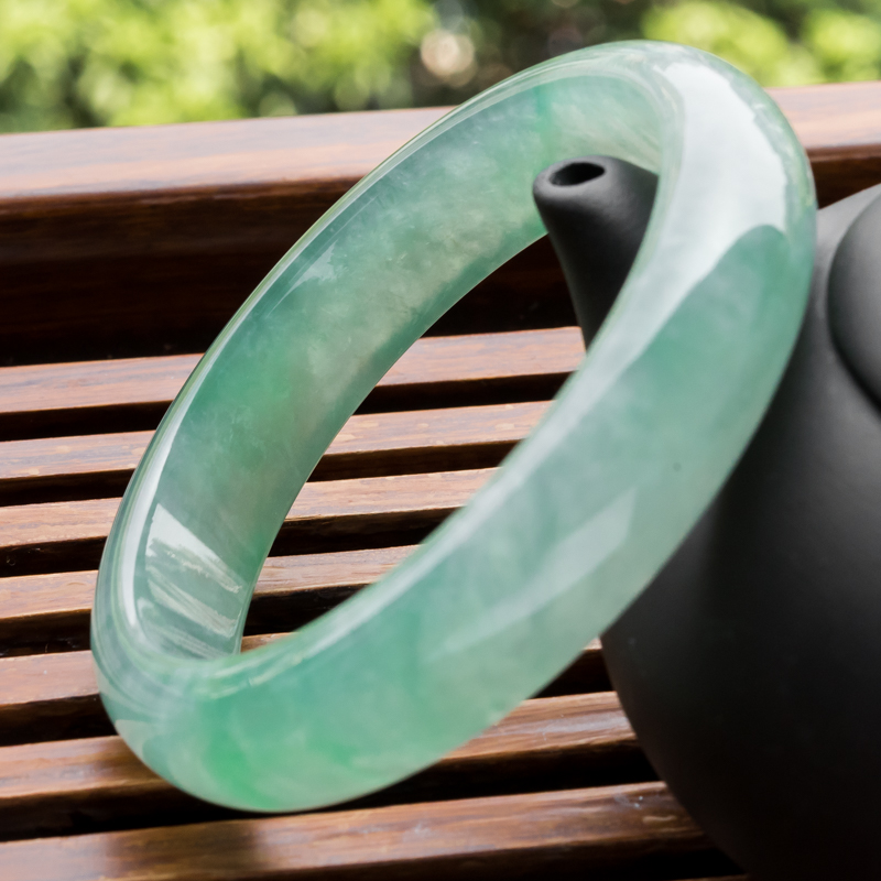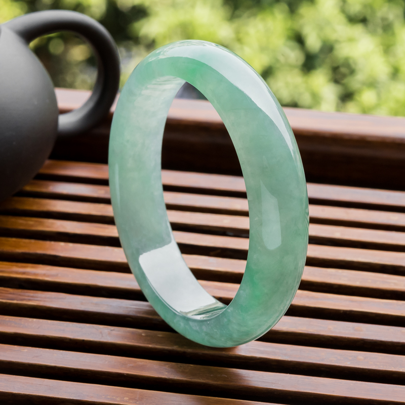 • 56.5mm糯冰种飘翠翡翠平安镯