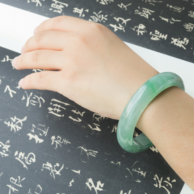 • [名  称] 56.5mm糯冰种飘翠翡翠平安镯