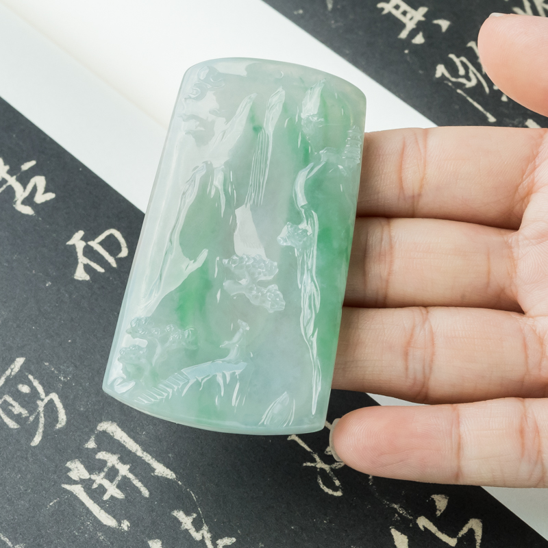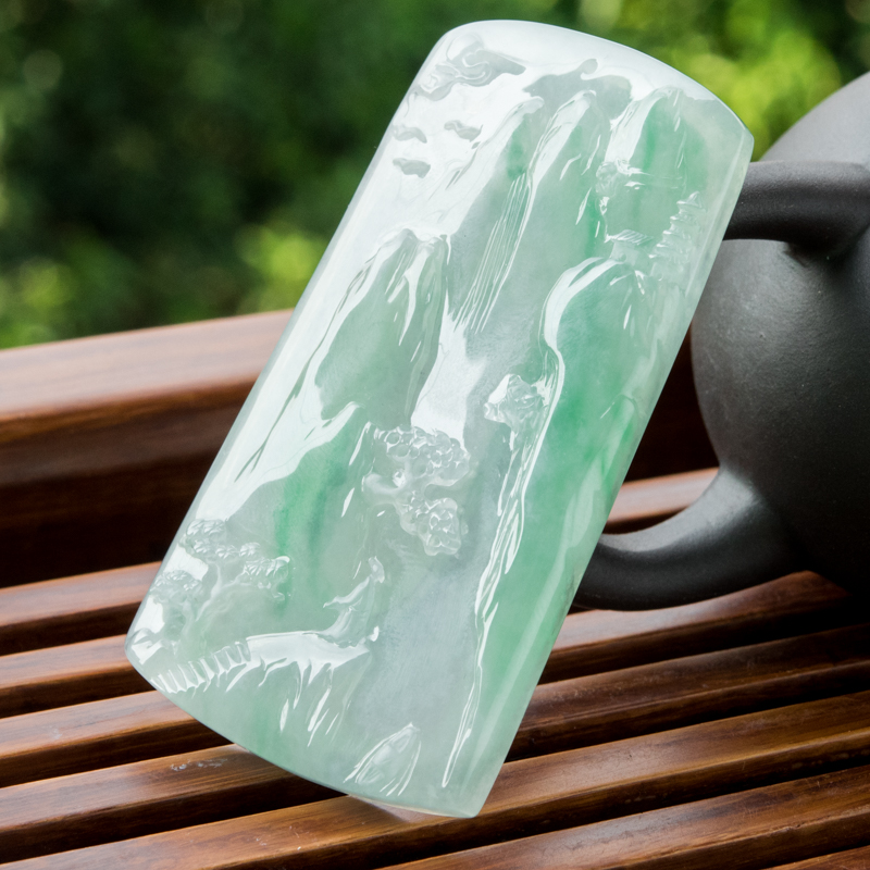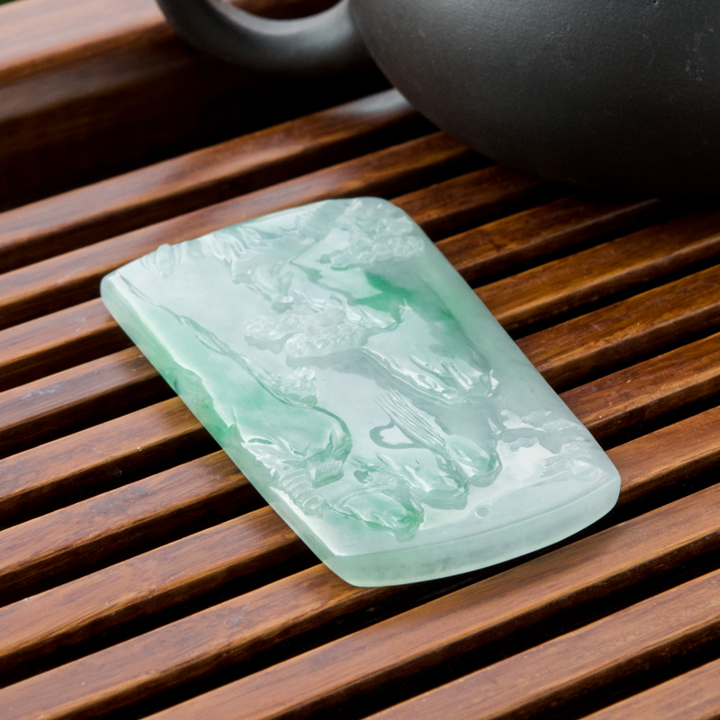 • [名  称] 糯冰种飘翠翡翠山水意境吊坠