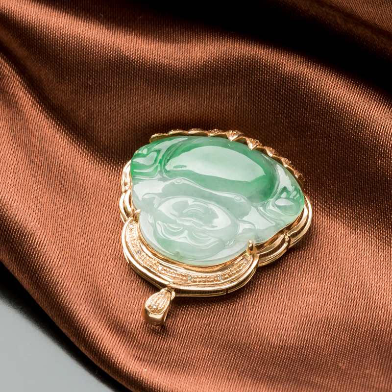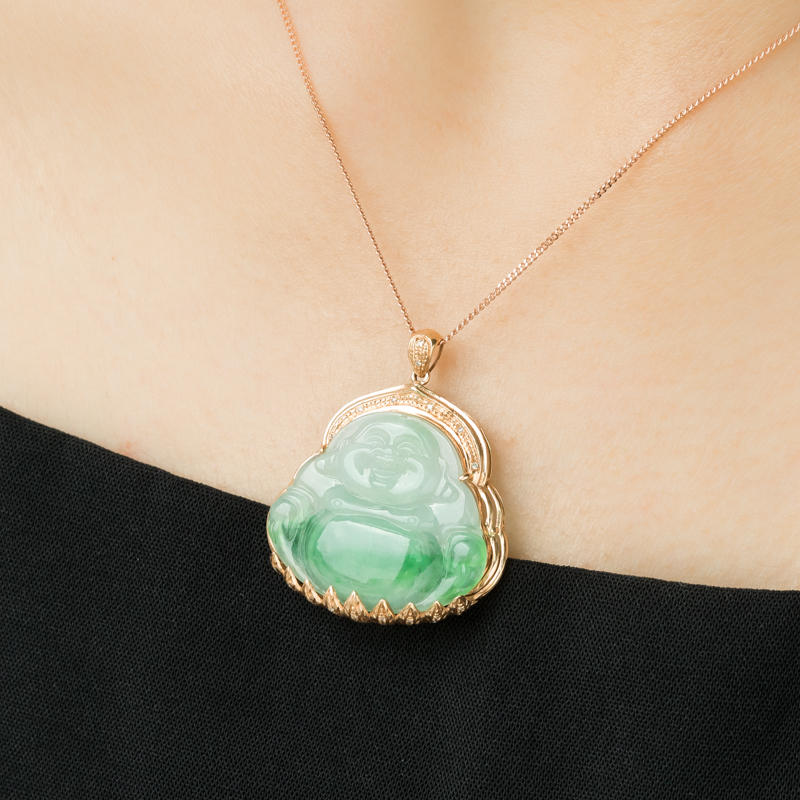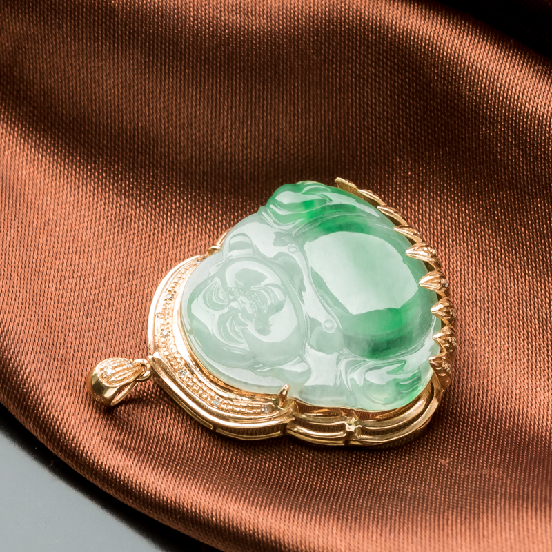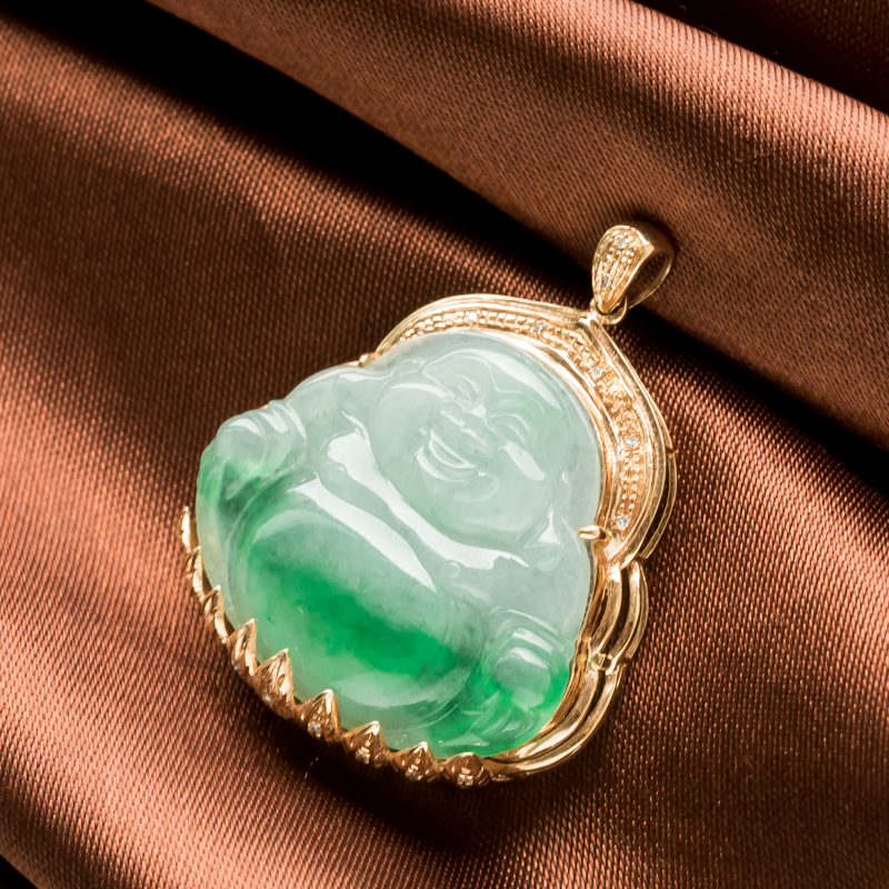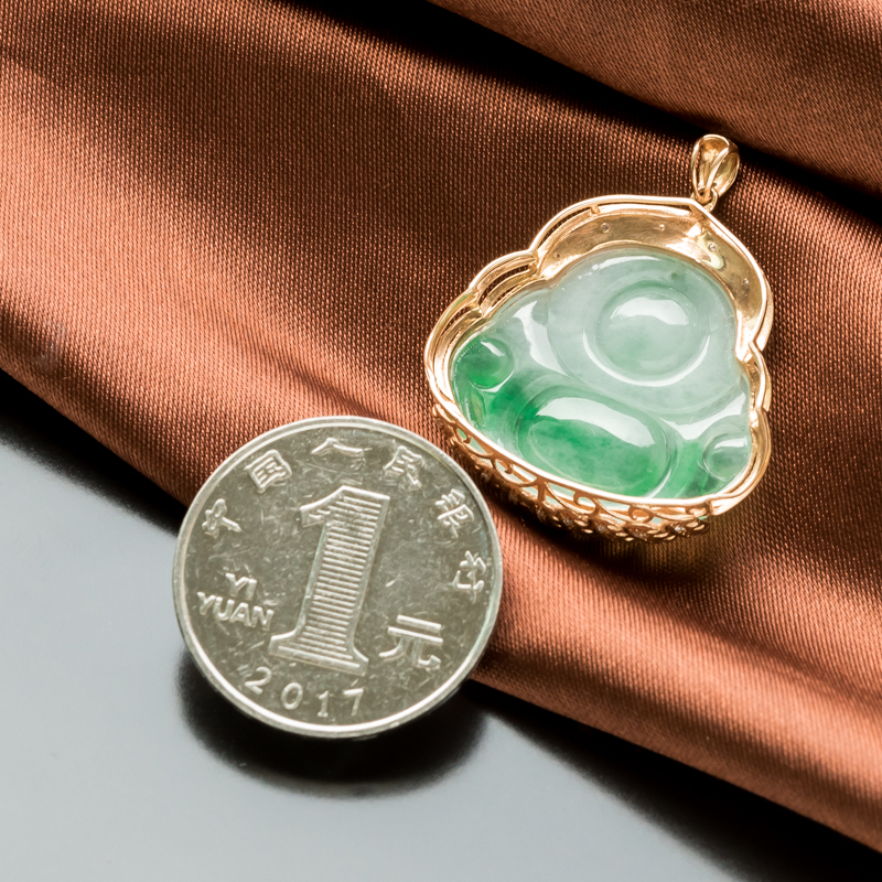 • [名  称] 18K糯冰种飘翠翡翠弥勒佛吊坠