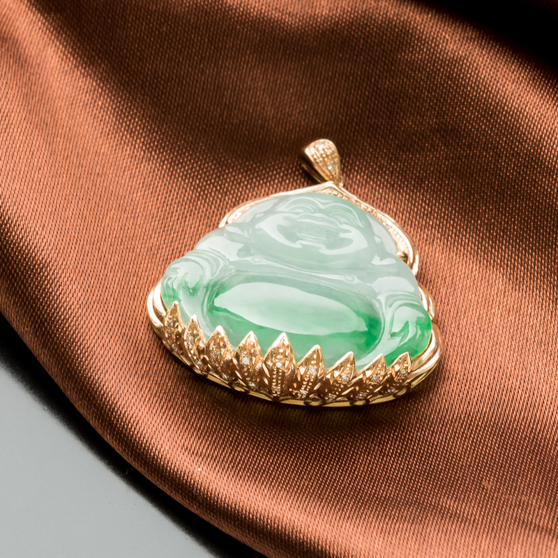 • 18K糯冰种飘翠翡翠弥勒佛吊坠