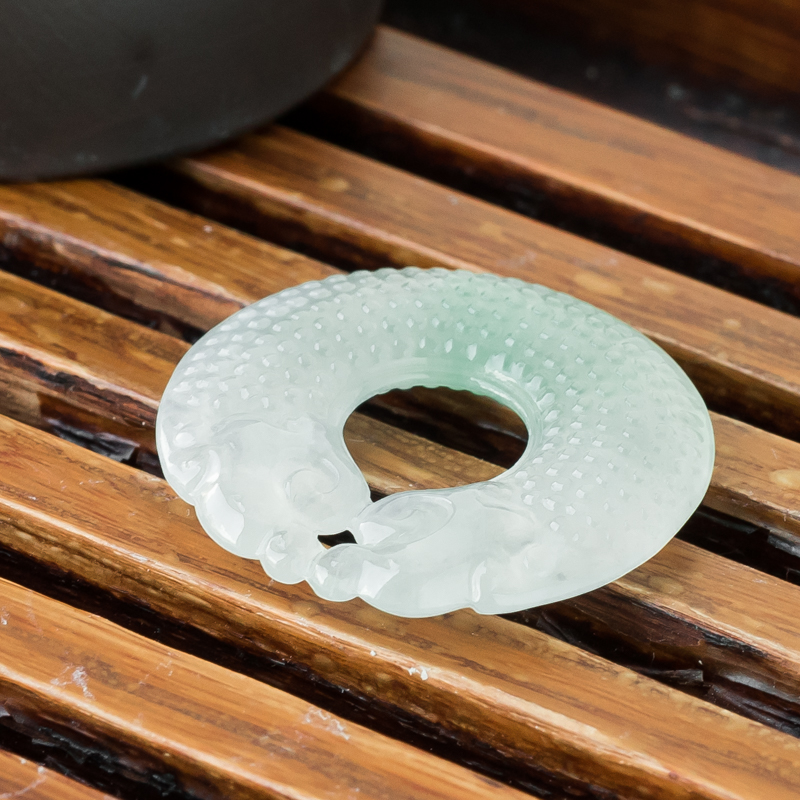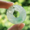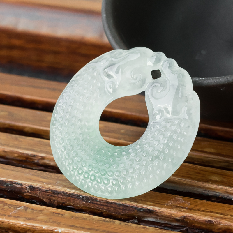 • 糯冰种飘翠翡翠双龙护主吊坠