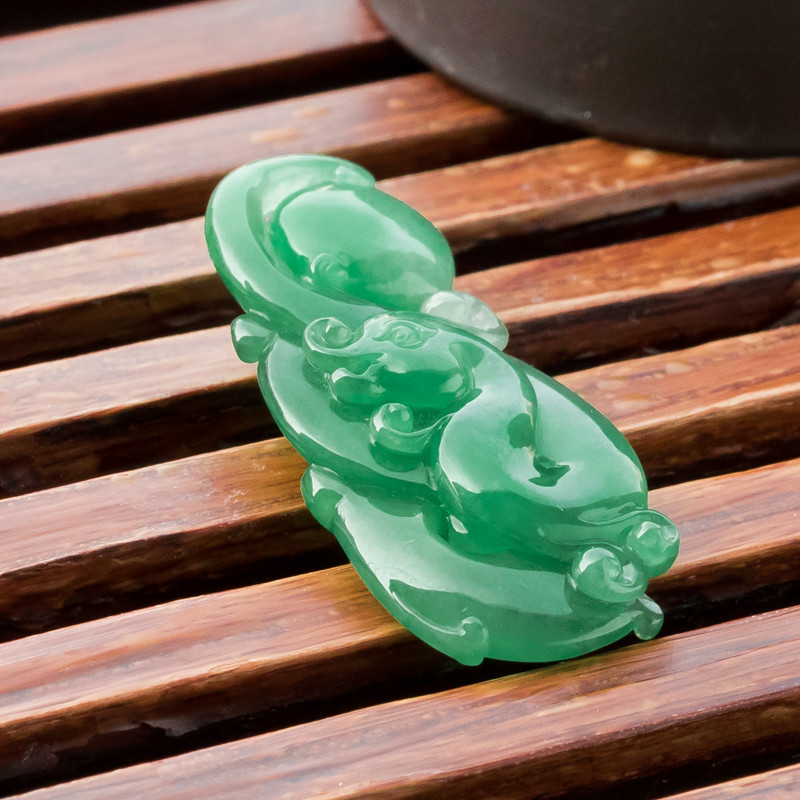 • 糯冰种翠绿翡翠龙凤呈祥吊坠