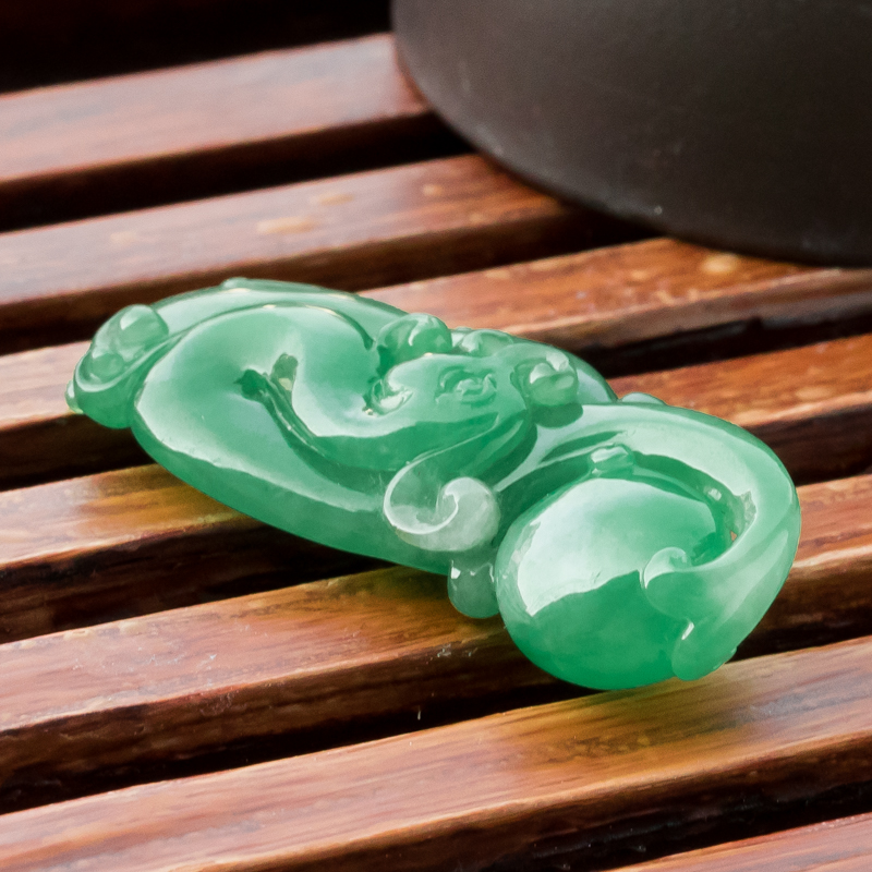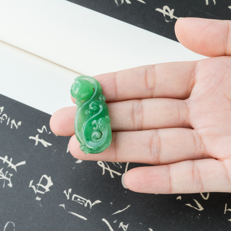 • [名  称] 糯冰种翠绿翡翠龙凤呈祥吊坠