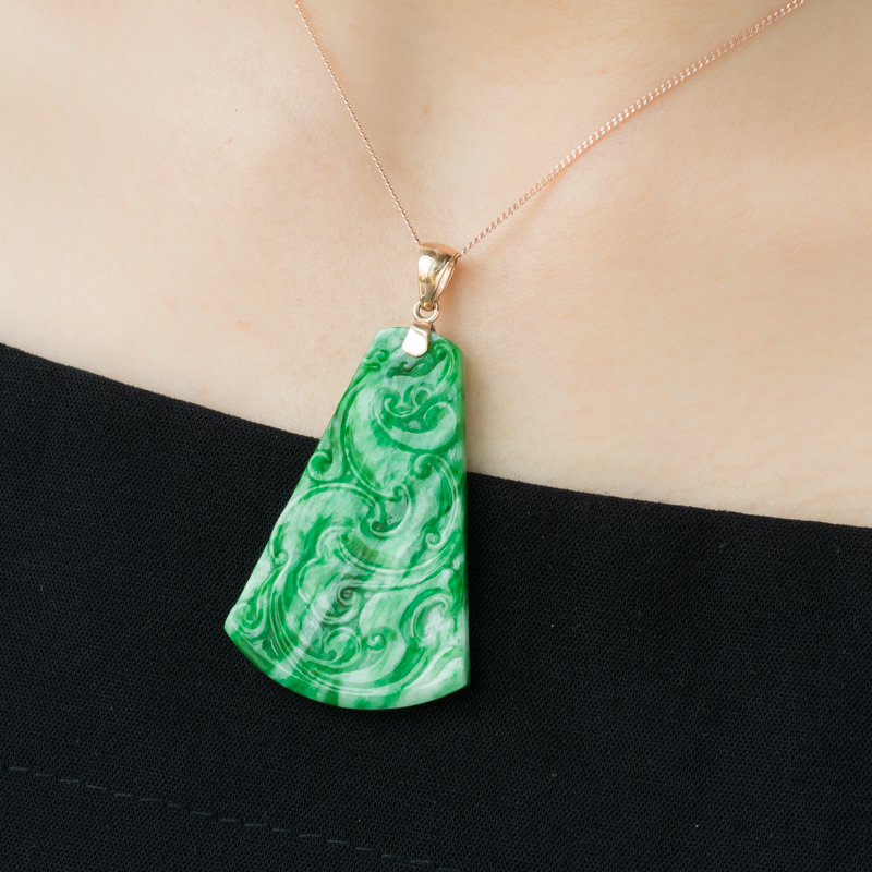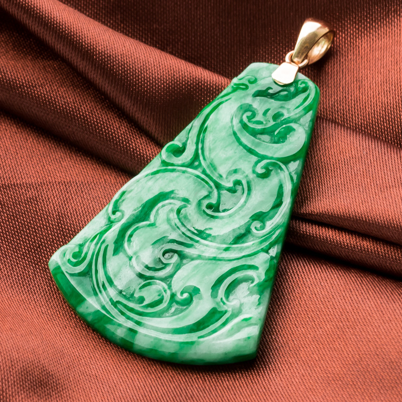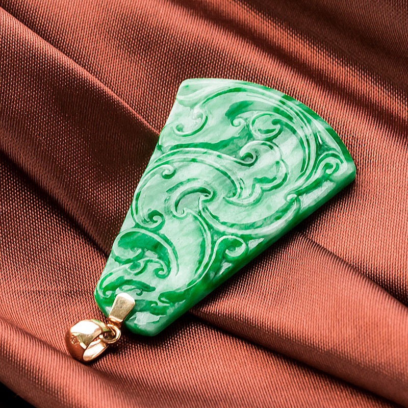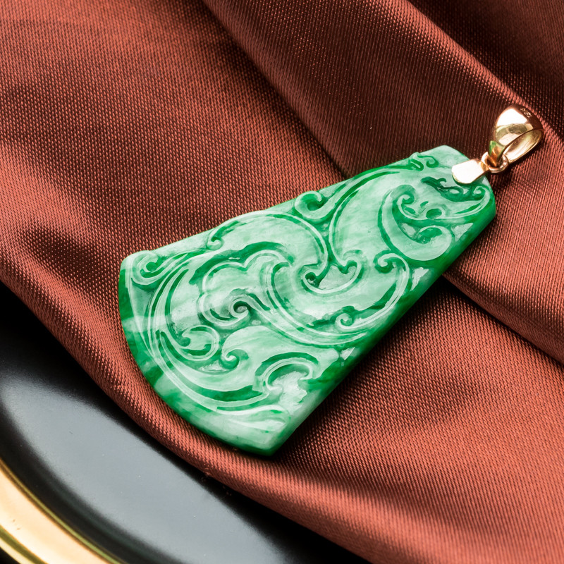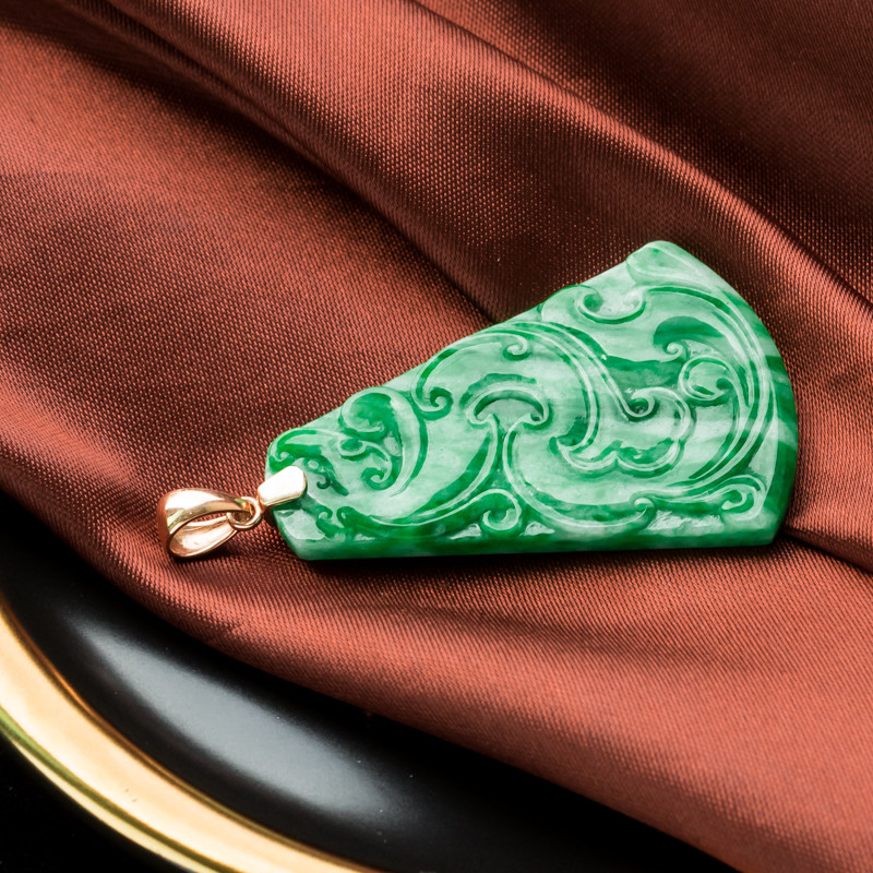 • 18K糯冰种飘翠翡翠龙凤呈祥吊坠