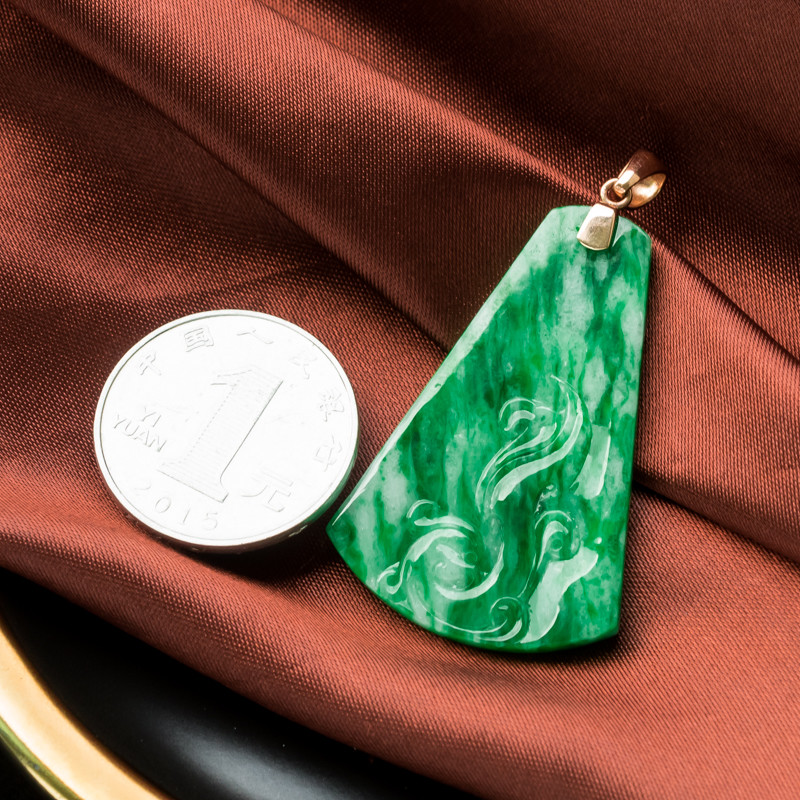 • [名  称] 18K糯冰种飘翠翡翠龙凤呈祥吊坠
