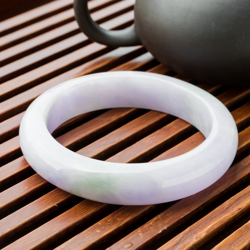 • 58.5mm糯冰种紫罗兰翡翠平安镯