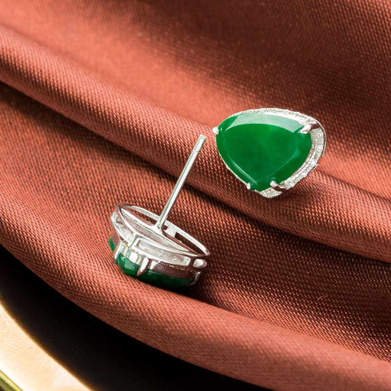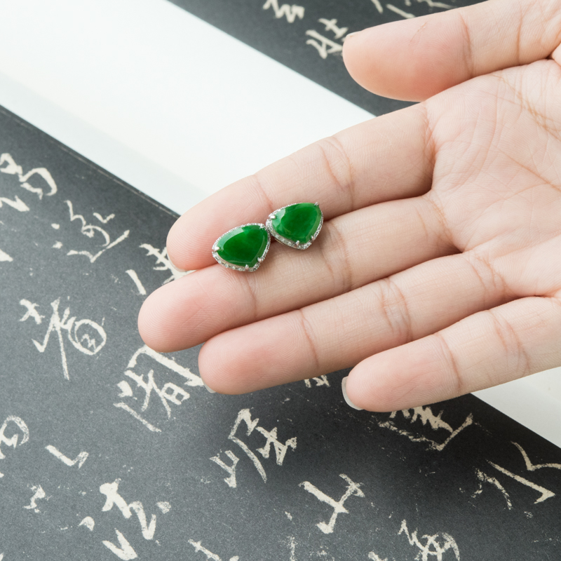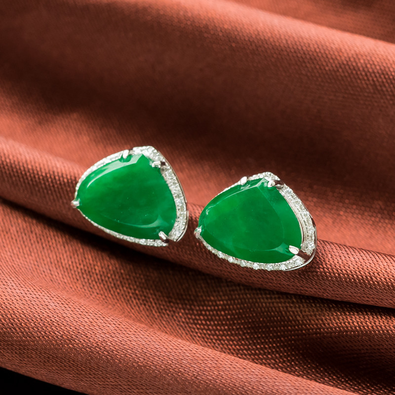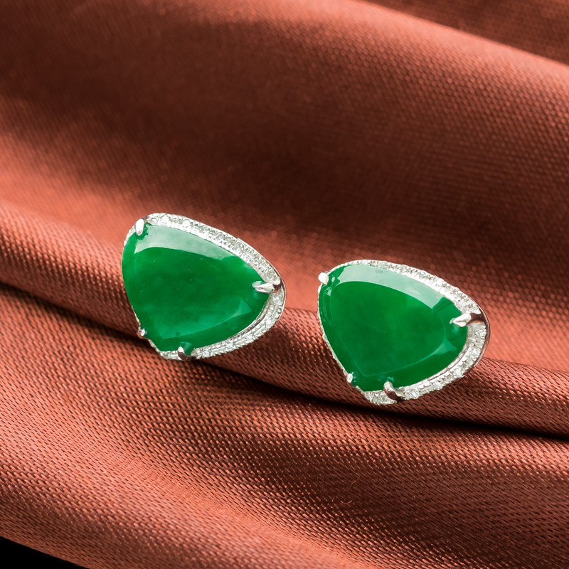 • 18K糯冰种翠绿翡翠耳钉