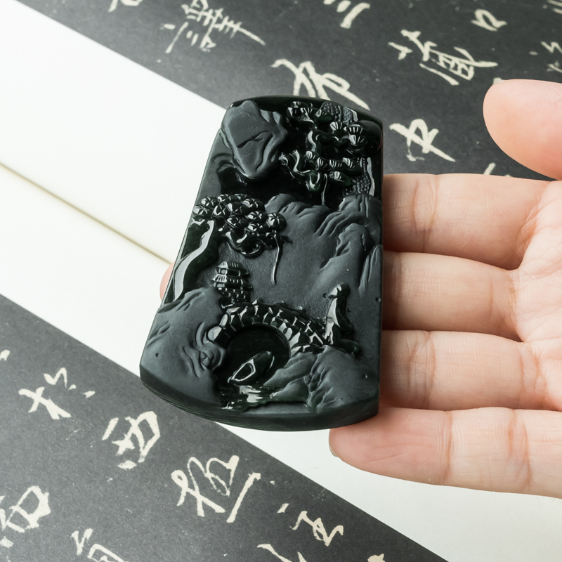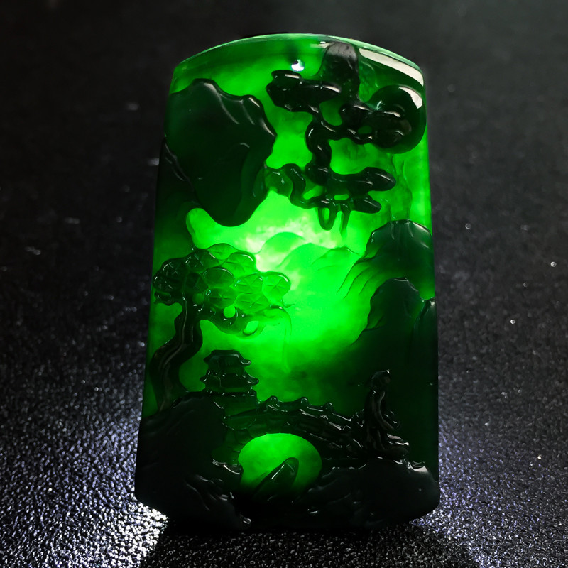 • [名  称] 糯冰种墨翠松下怀远吊坠