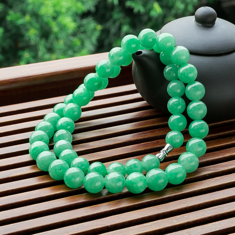 • 糯冰种翠绿翡翠塔链