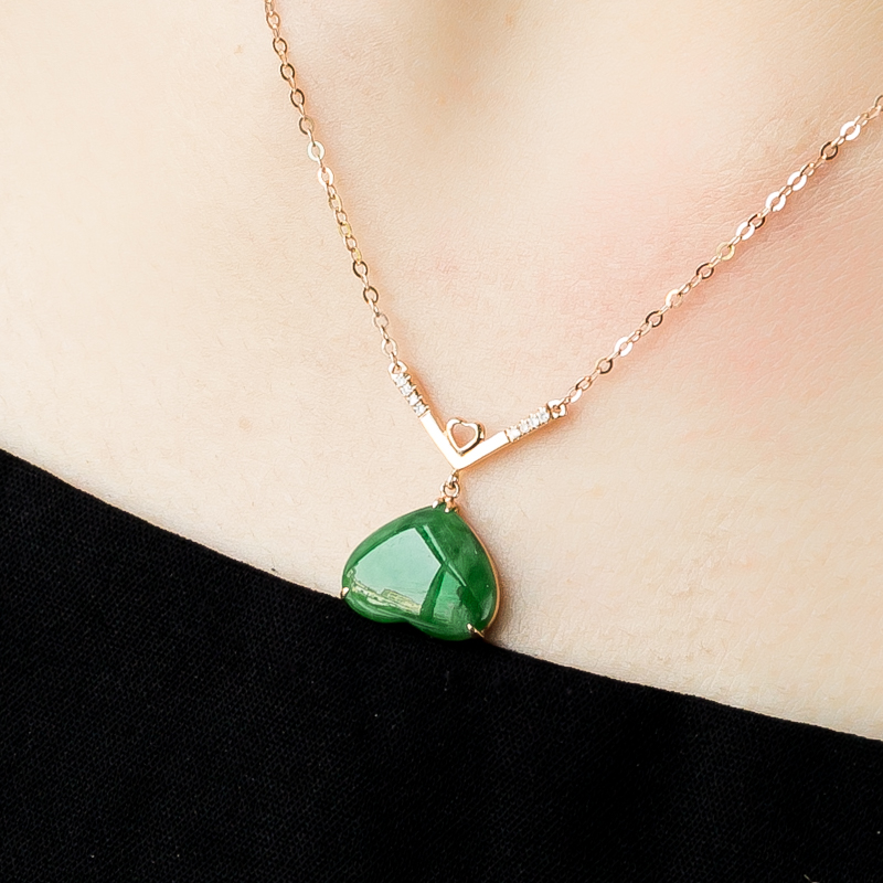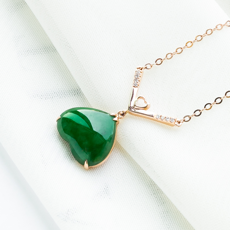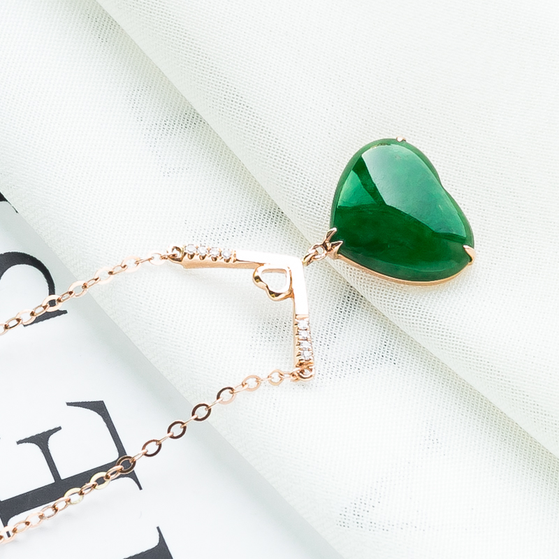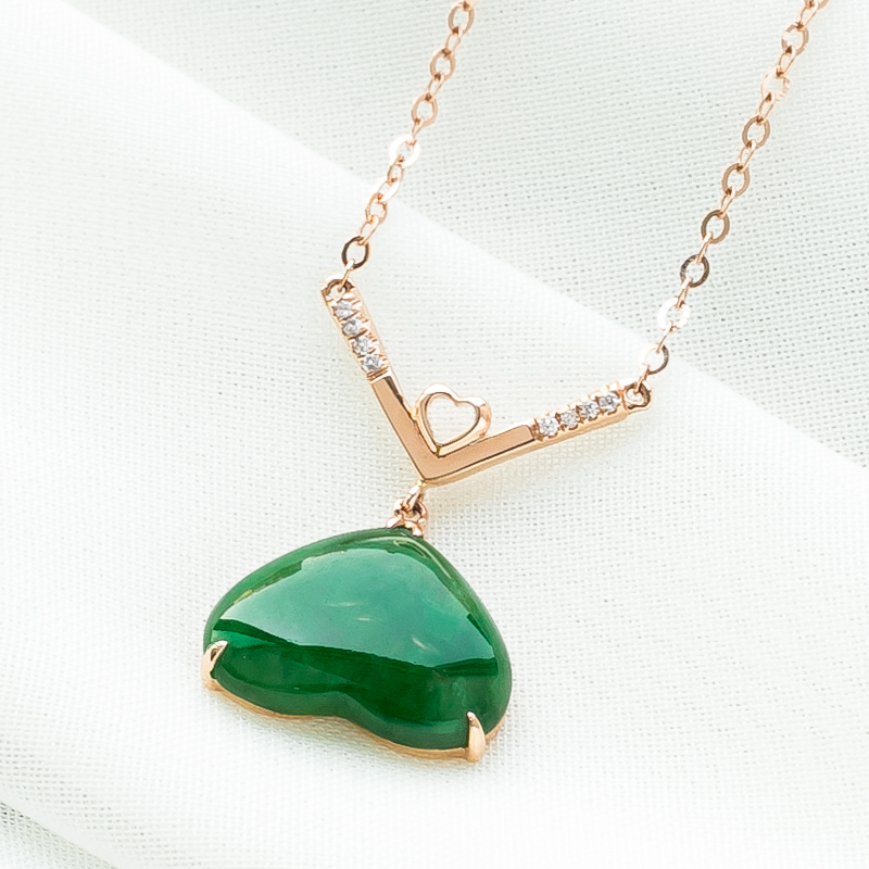 • [名  称] 18K糯冰种翠绿翡翠心心相印项链