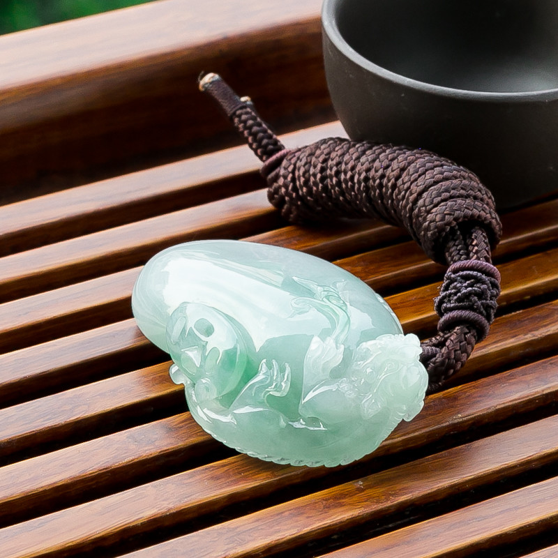 • [名  称] 糯冰种蓝绿翡翠貔貅吊坠