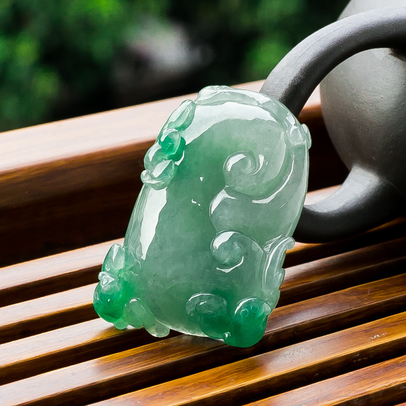 • [名  称] 糯冰种飘翠翡翠如意吊坠