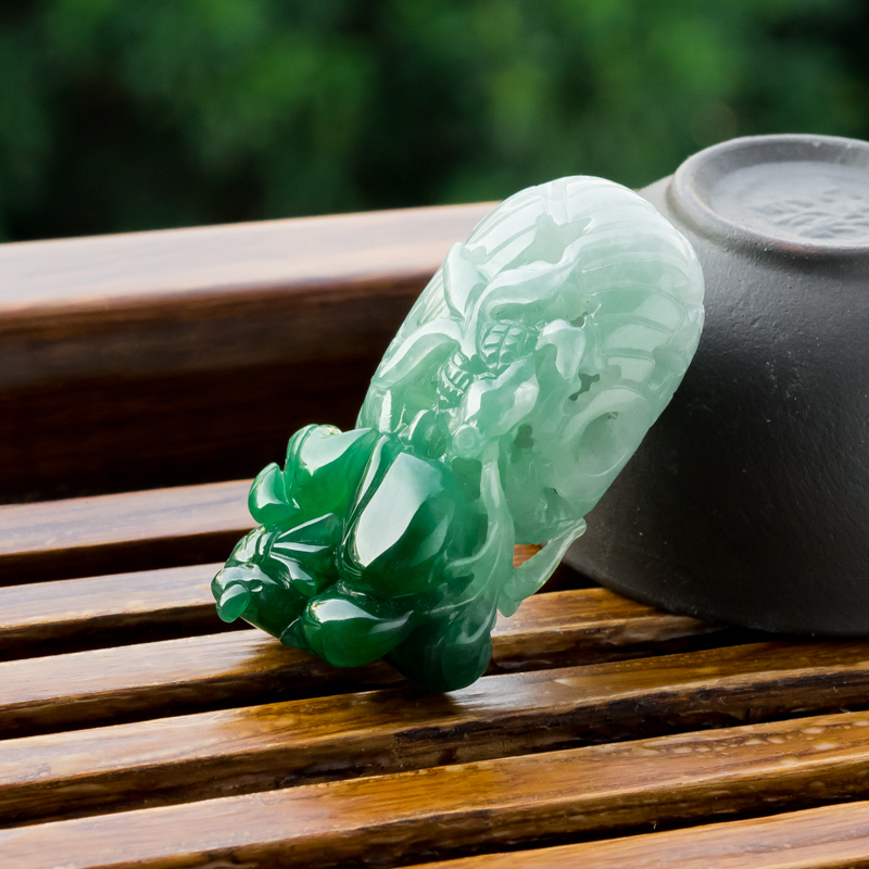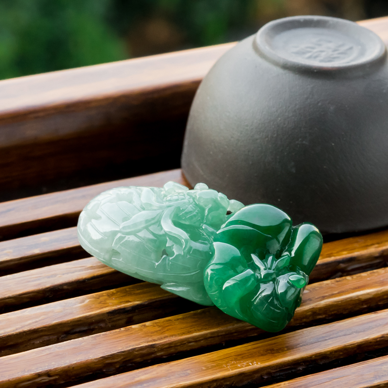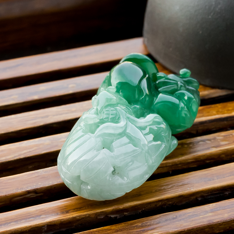 • 糯冰种俏色翡翠金玉满堂吊坠