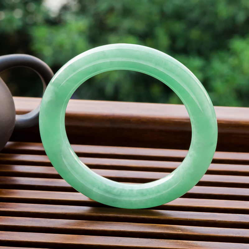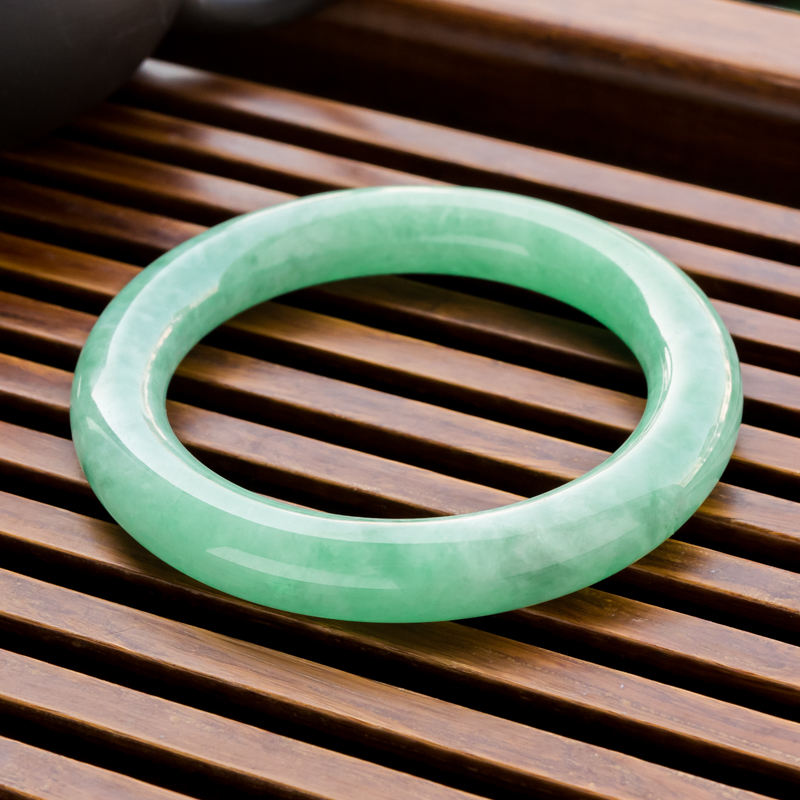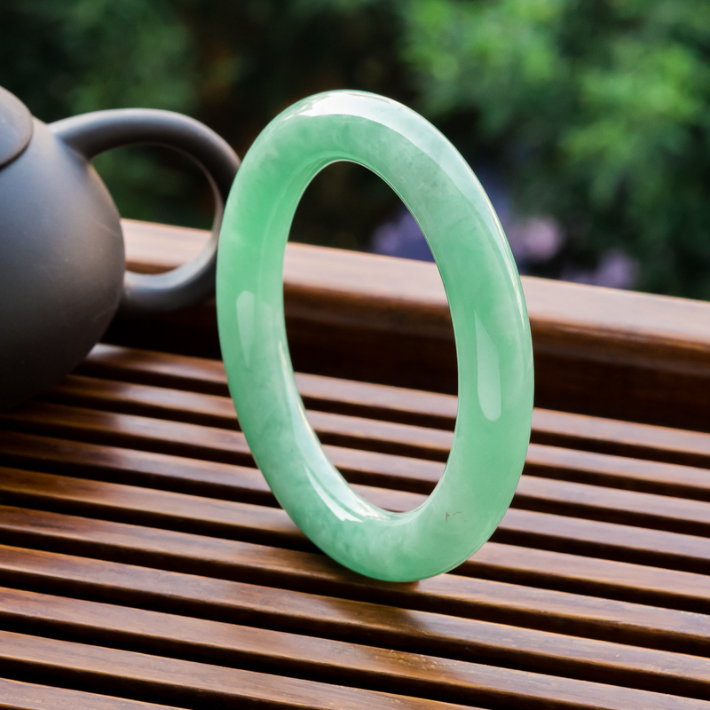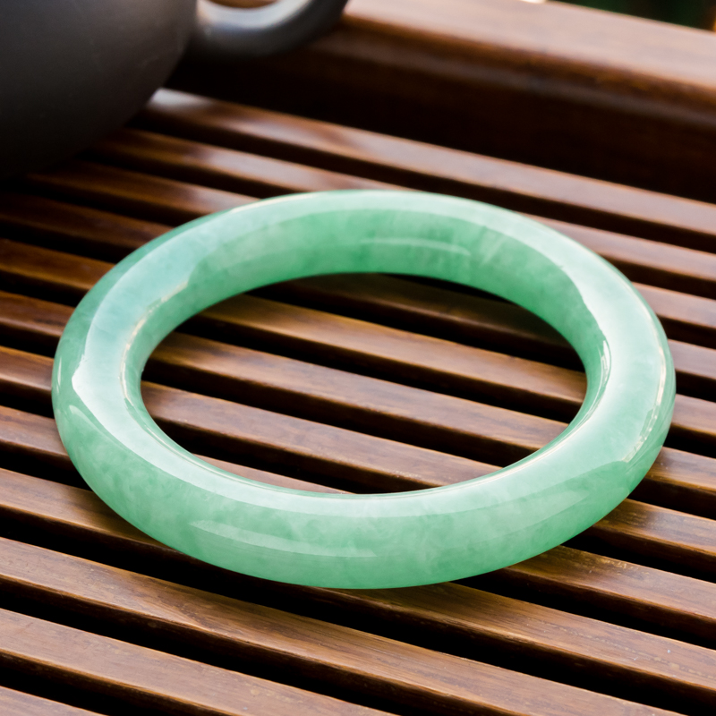 • 55.5mm糯冰种苹果绿翡翠圆镯