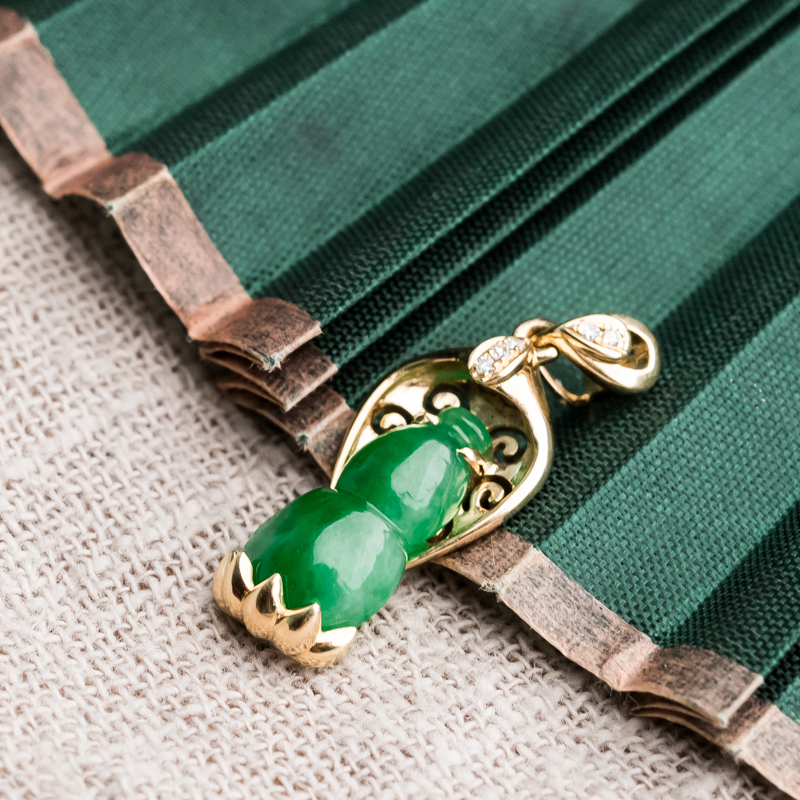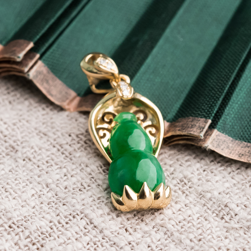 • 18K糯冰种翠绿翡翠福禄吊坠