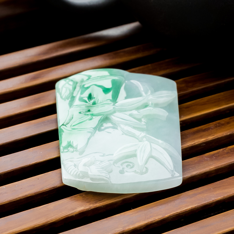 • 糯冰种飘翠翡翠节节高升吊坠
