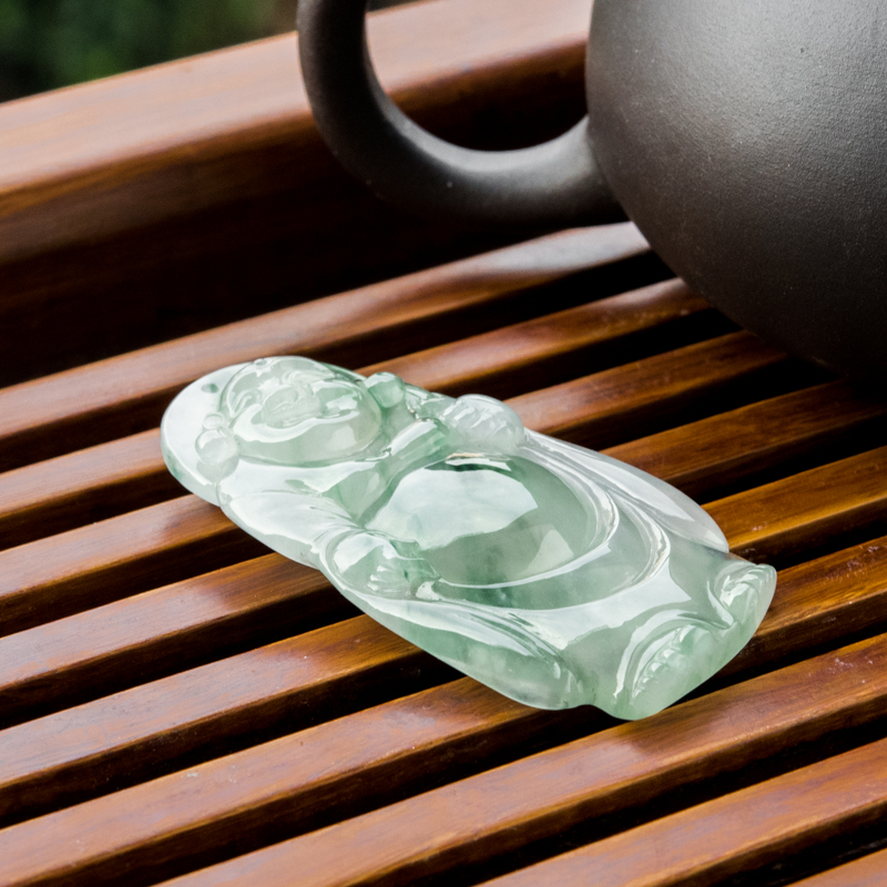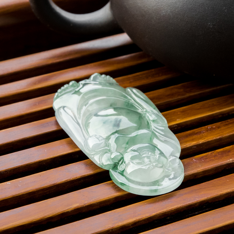 • 糯冰种飘花翡翠弥勒佛吊坠