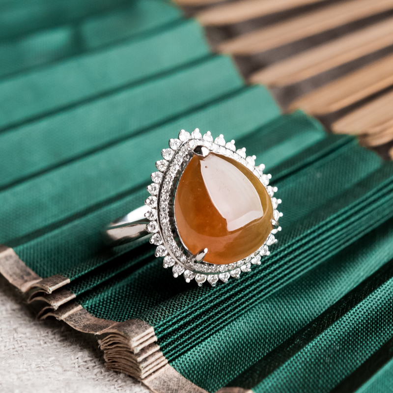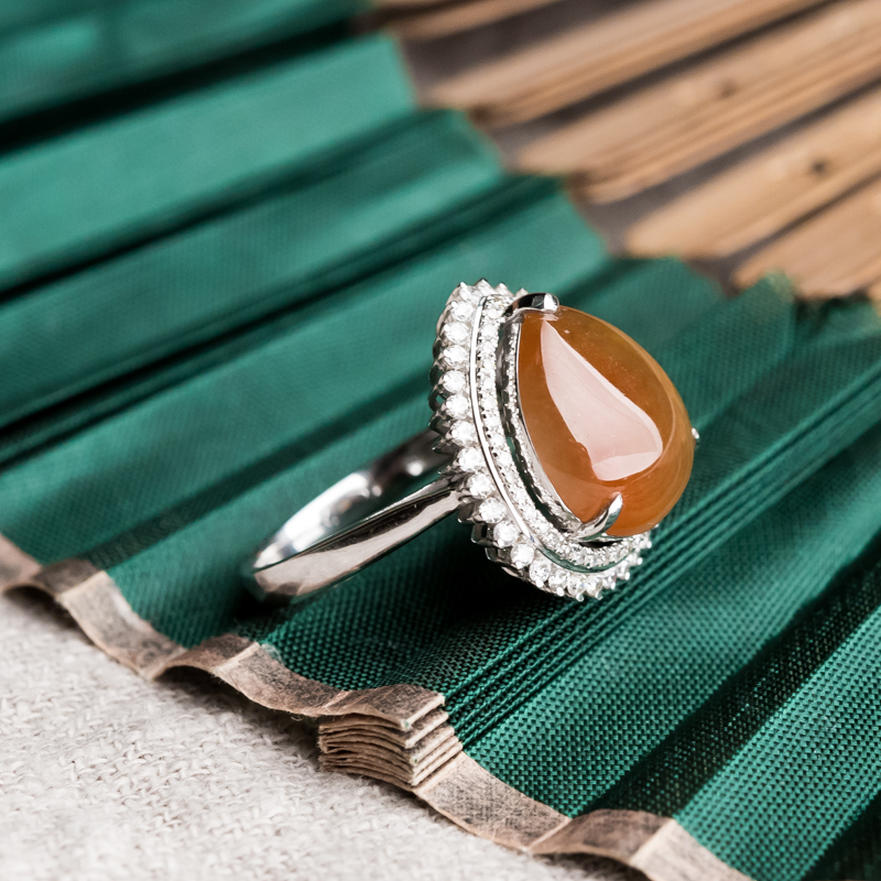 • 18K糯冰种红翡翡翠水滴戒指