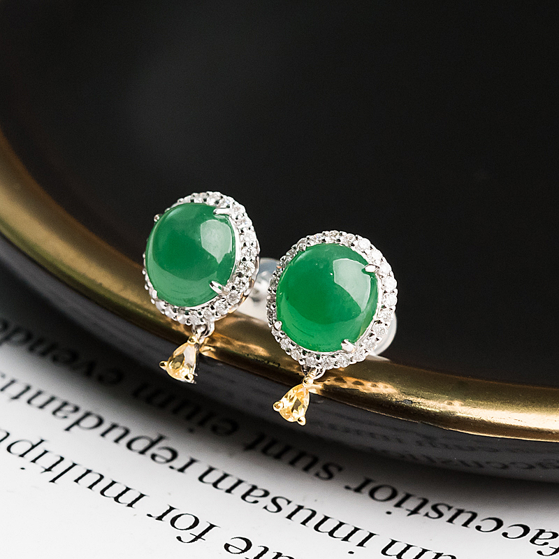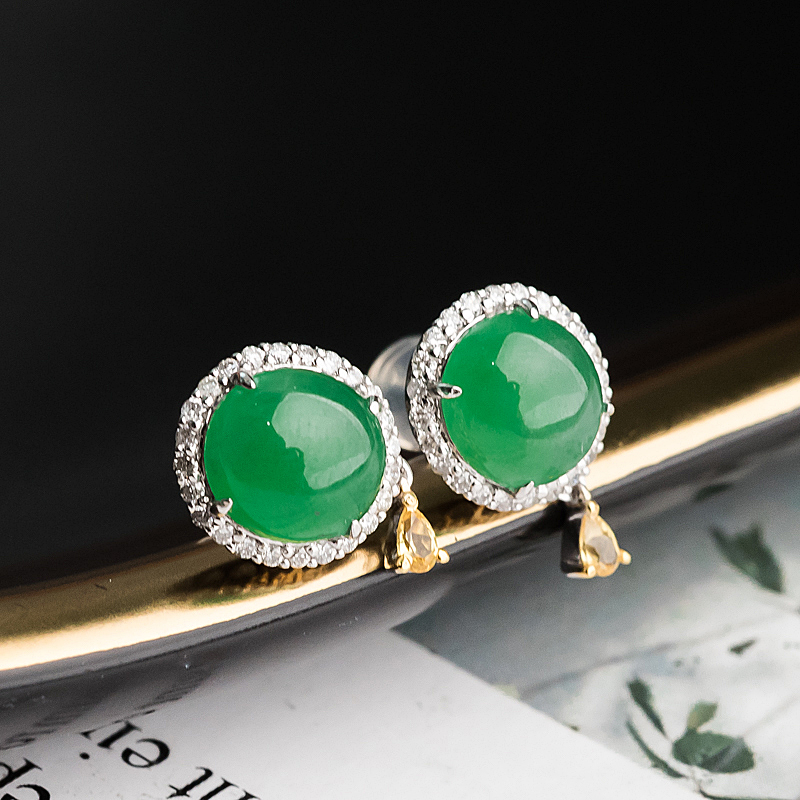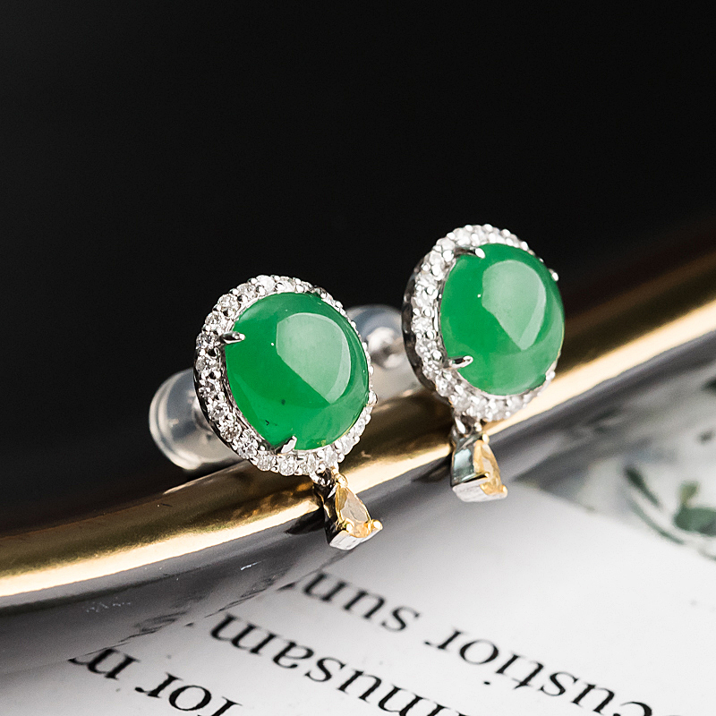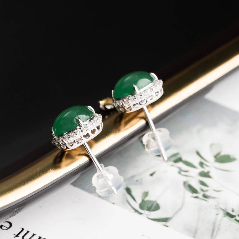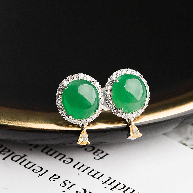 • 18K糯冰种翠绿翡翠耳钉