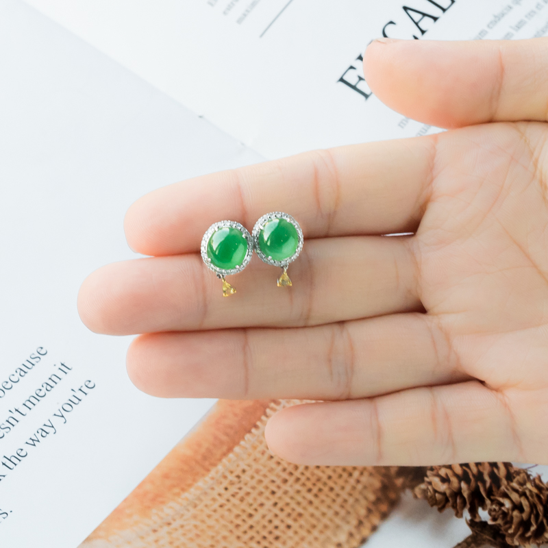 • [名  称] 18K糯冰种翠绿翡翠耳钉