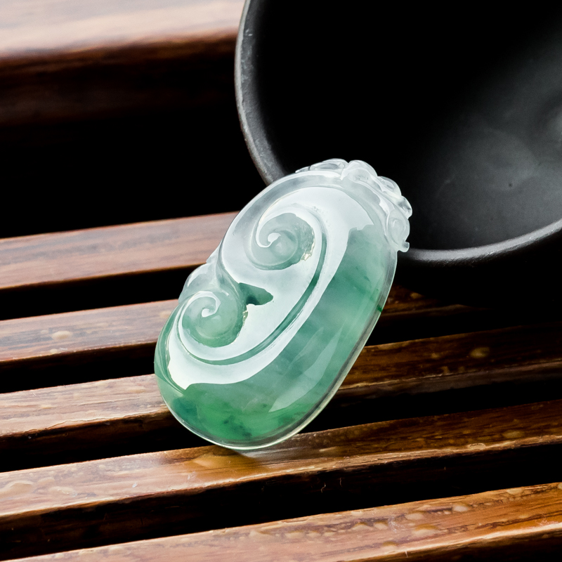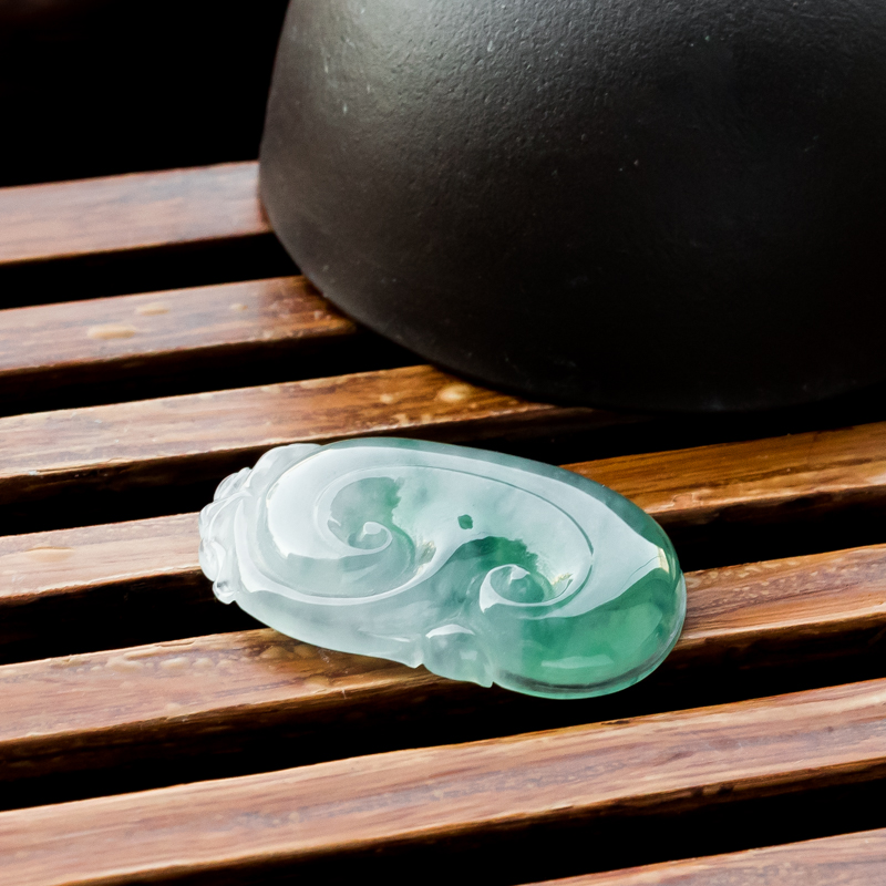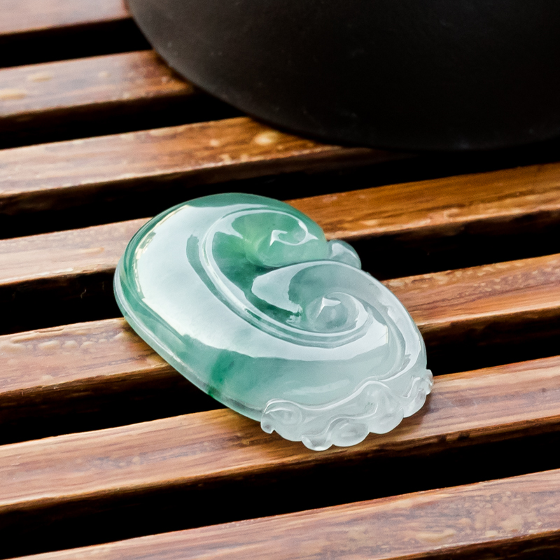 • 糯冰种飘花翡翠如意吊坠