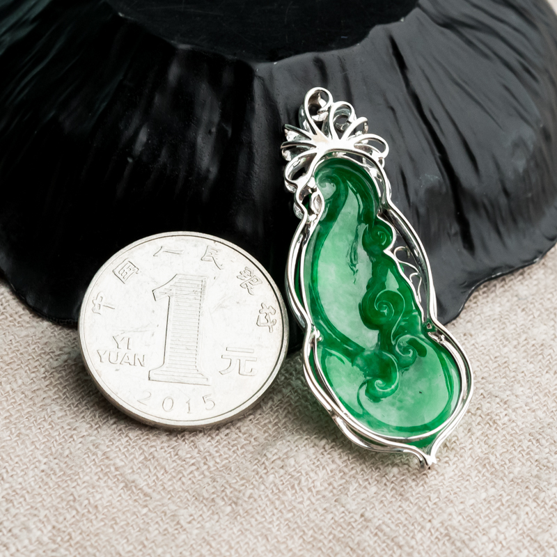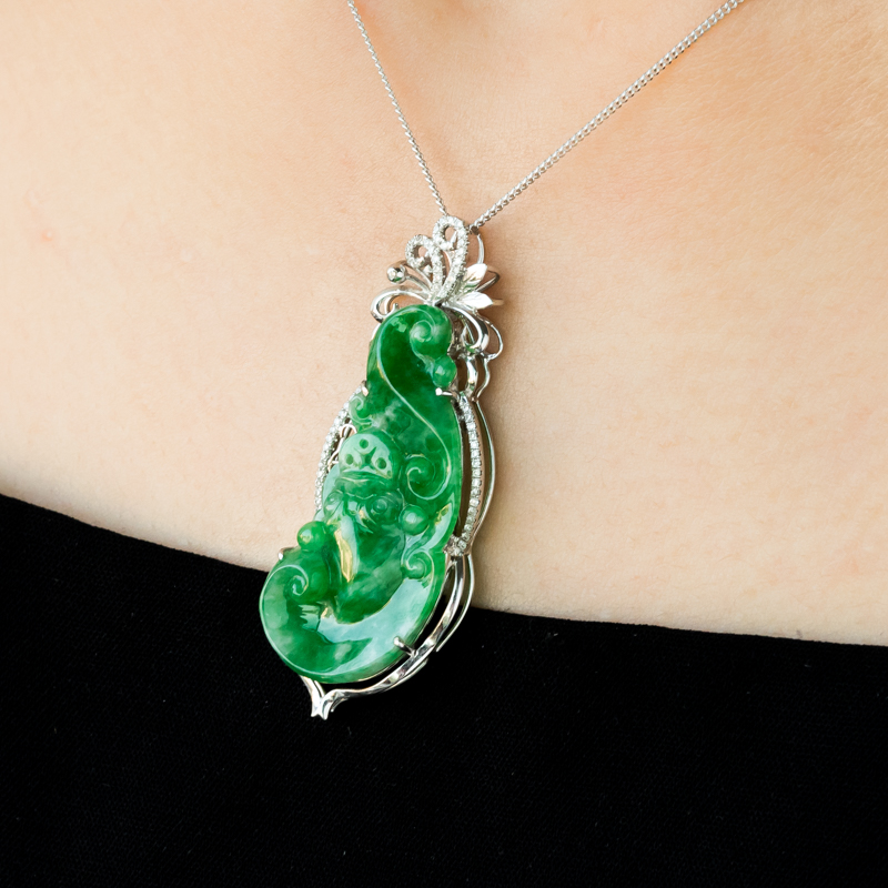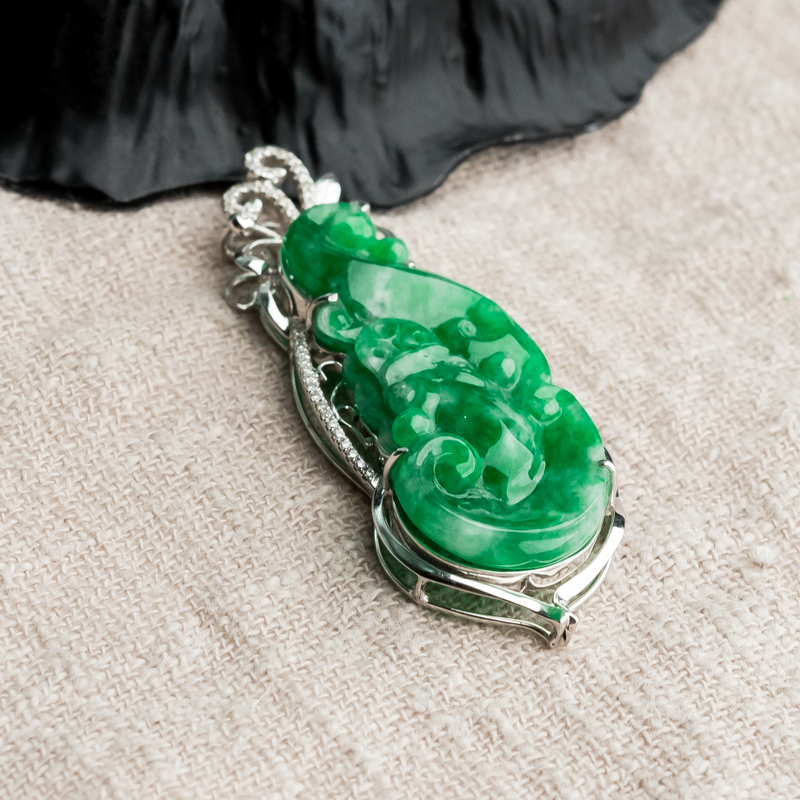 • [名  称] 18K糯冰种翠绿翡翠瑞兽吊坠