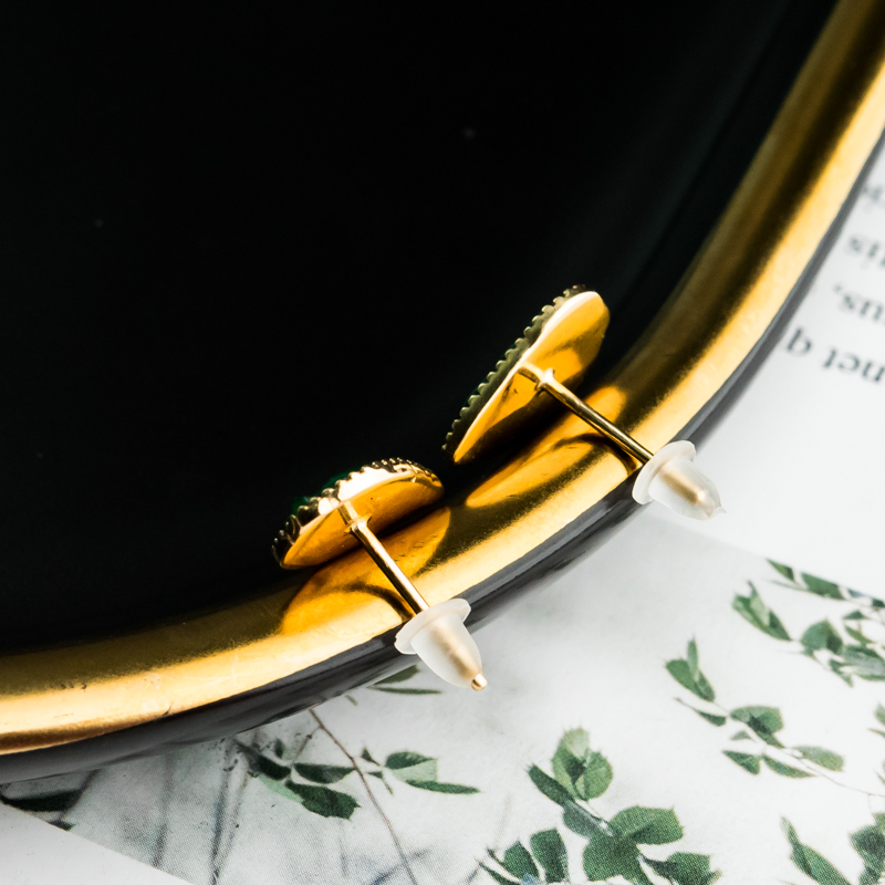 • 18K糯冰种翠绿翡翠金枝玉叶耳钉