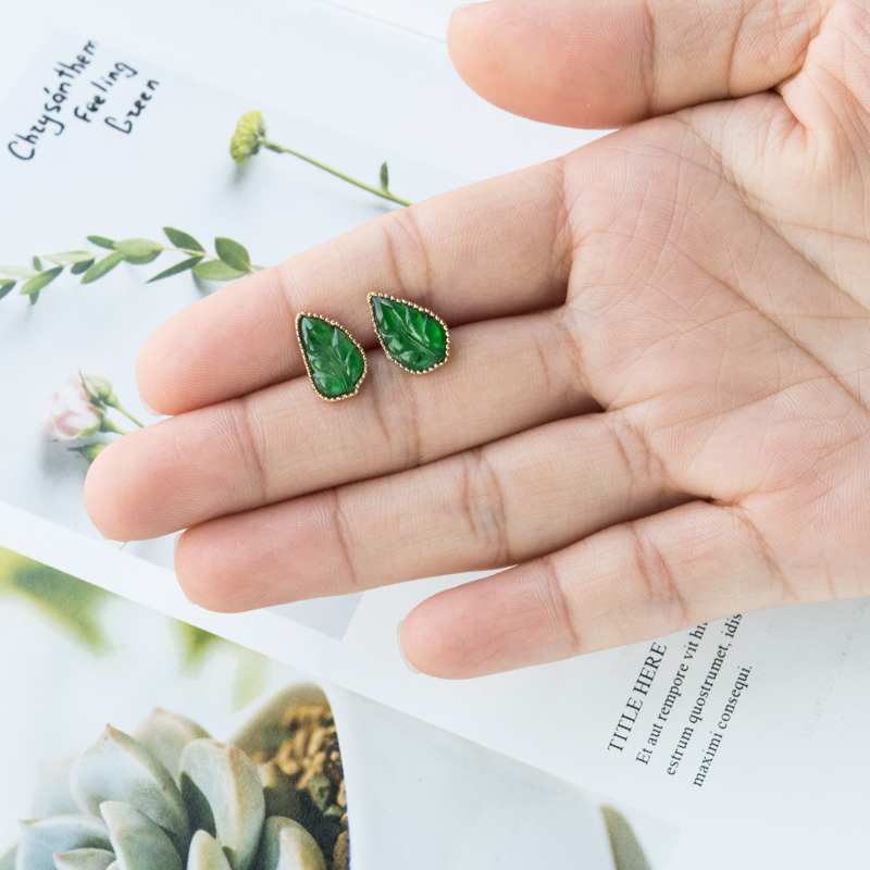 • [名  称] 18K糯冰种翠绿翡翠金枝玉叶耳钉
