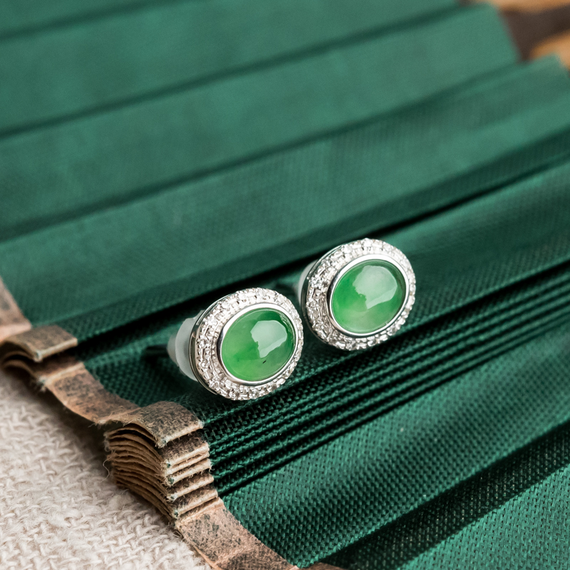 • [名  称] 18K糯冰种浅绿翡翠耳钉
