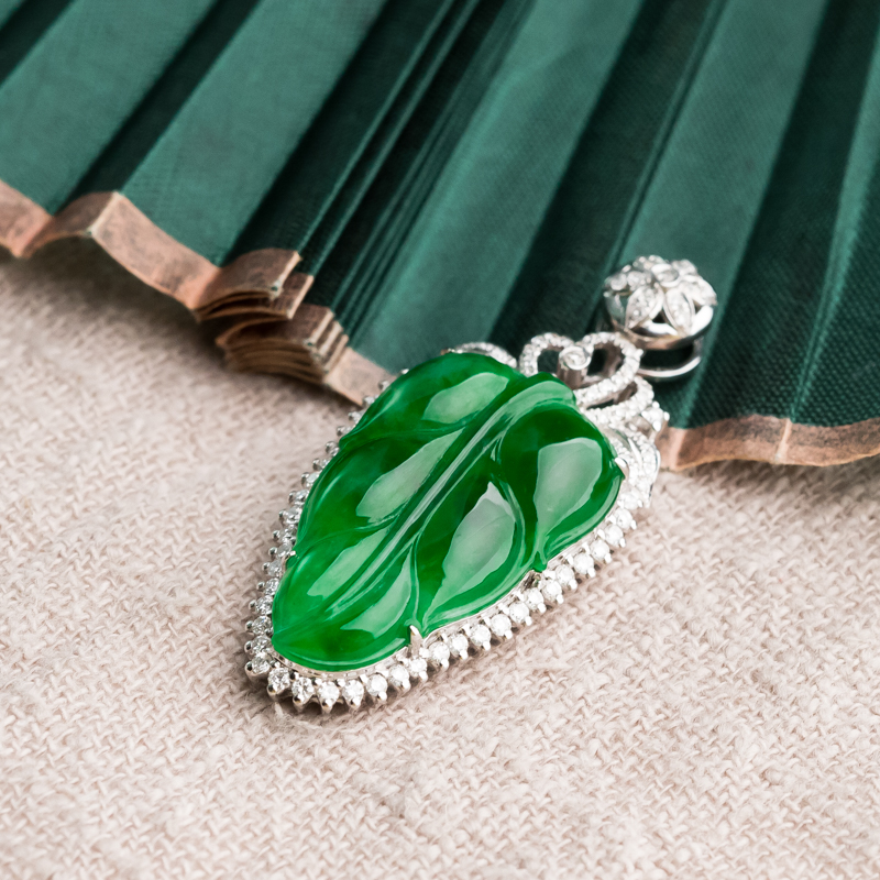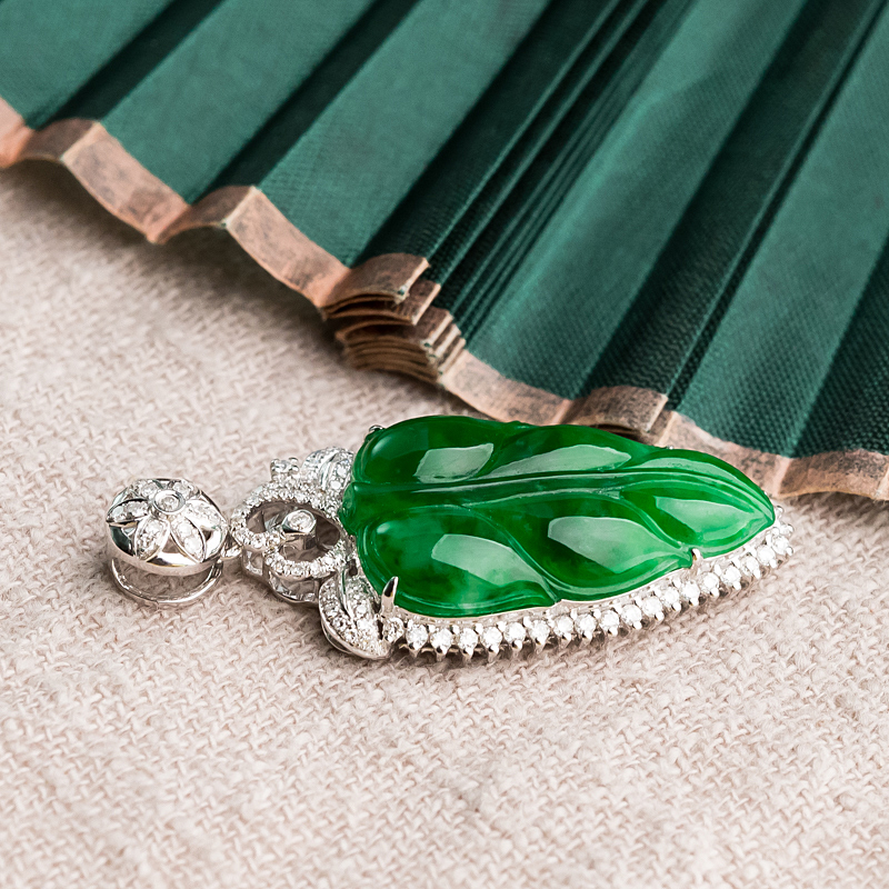 • 18K糯冰种翠绿翡翠事业有成吊坠