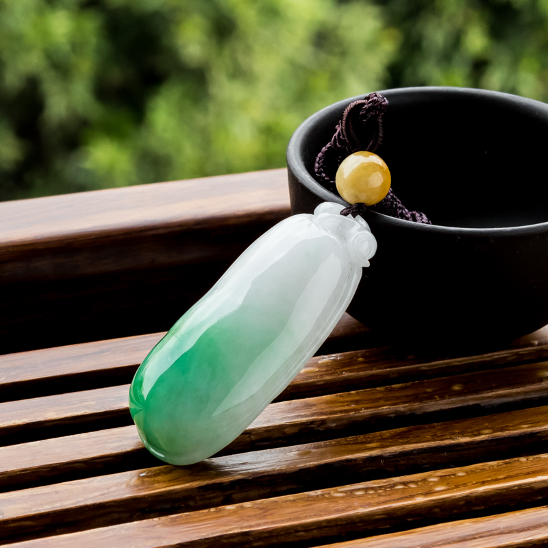 • 糯冰种飘翠翡翠福瓜吊坠