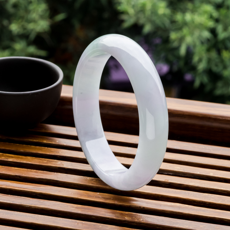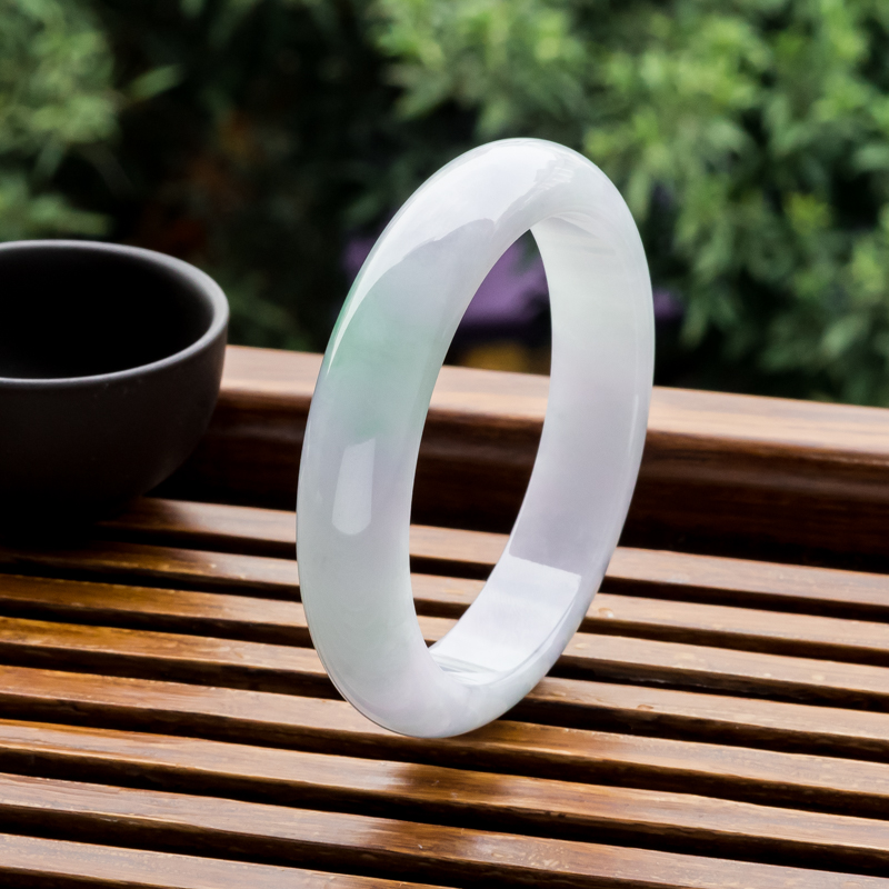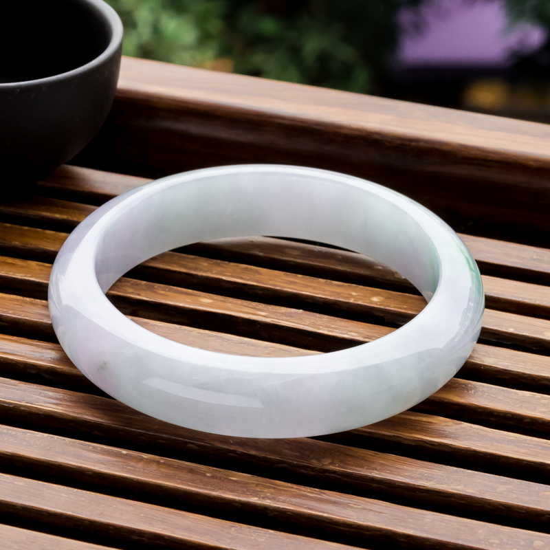 • [名  称] 57.5mm糯冰种春带彩翡翠平安镯
